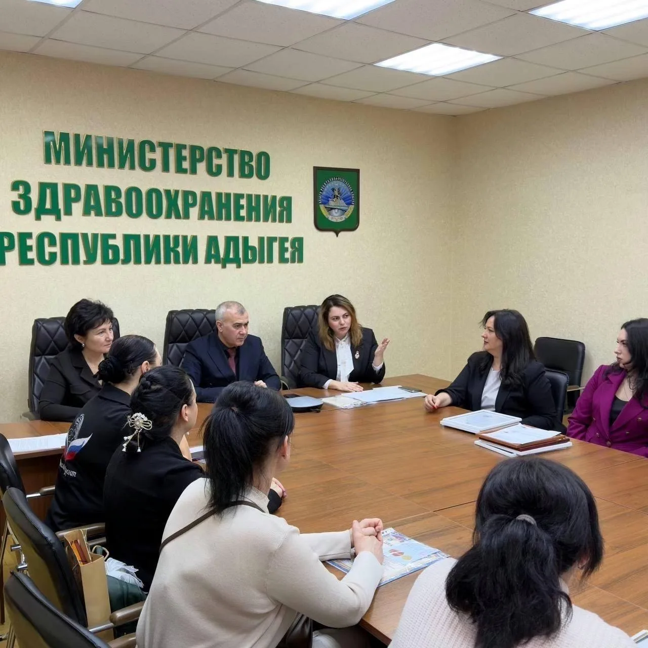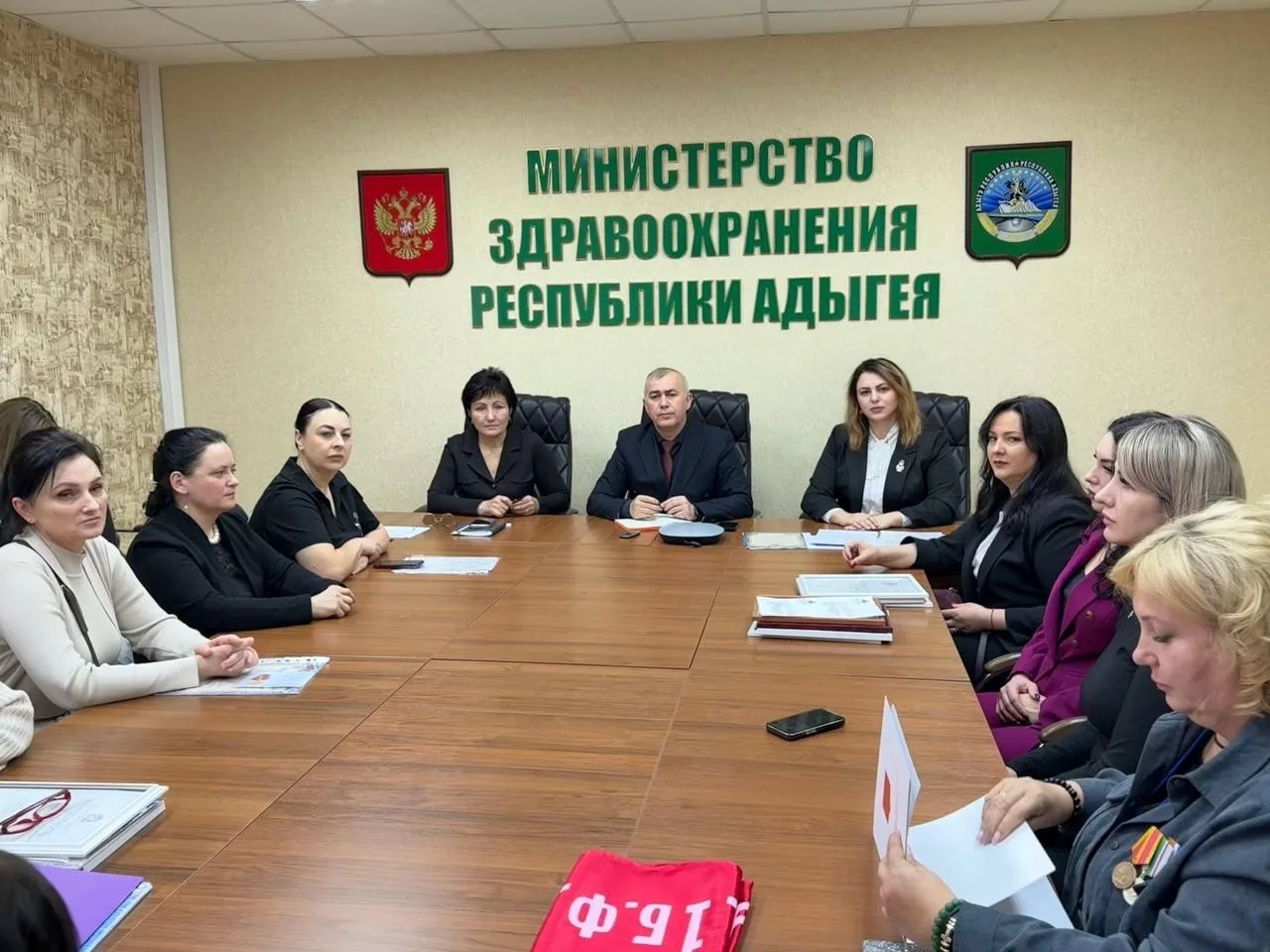 Сегодня на площадке Минздрава Адыгеи под руководством министра здравоохранения Рустема Меретукова состоялась рабочая встреча с представителями волонтёрских групп и депутатом Горсовета Майкопа, председателем Комитета по социальной политике и здравоохранению Палаты молодых законодателей при Совете Федерации Асетой Берзеговой.