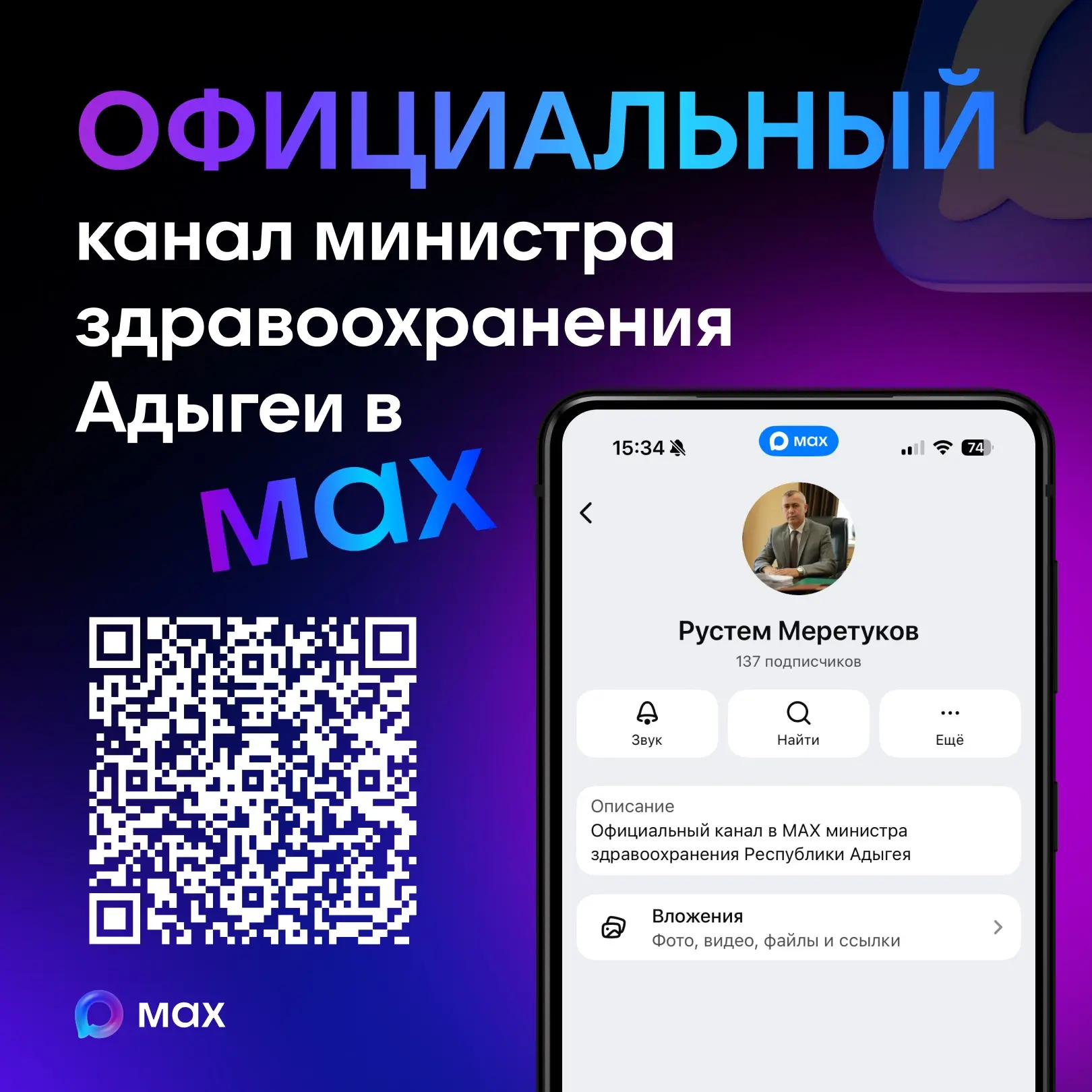 Подписывайтесь на канал министра здравоохранения Адыгеи Рустема Меретукова в МАХ