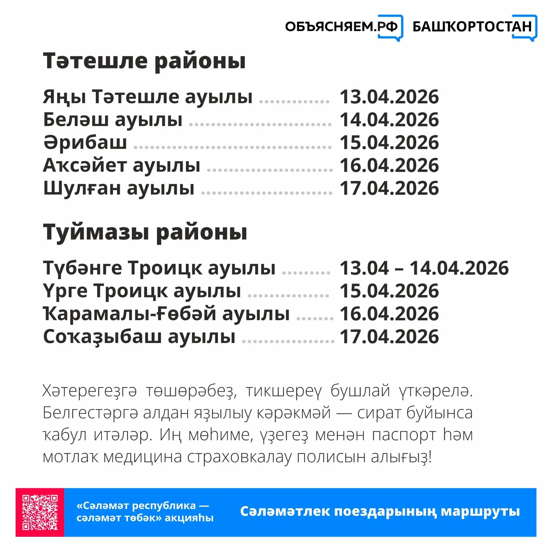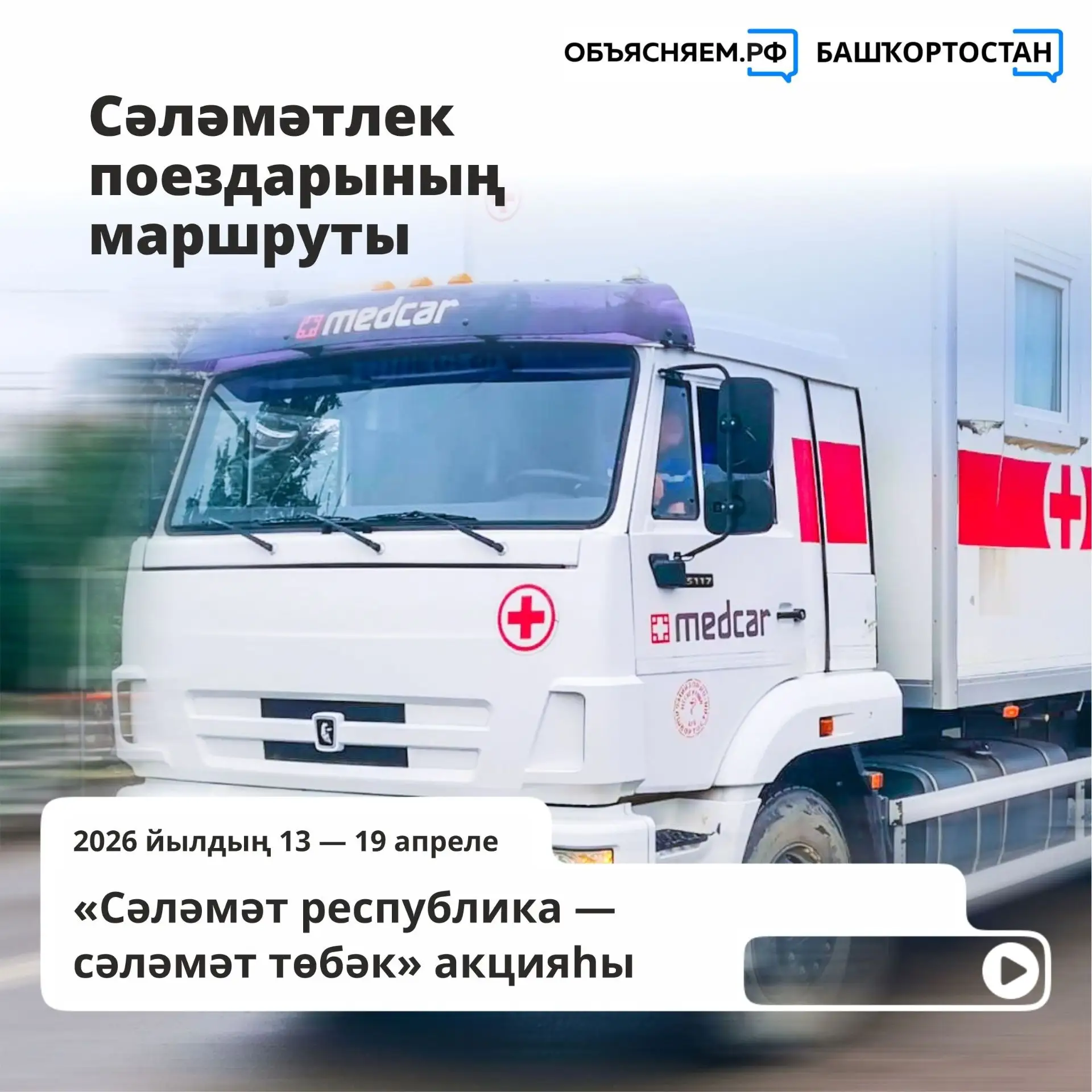 🚑 Акция «Здоровая республика — здоровый регион» проходит в 8-й раз. Поезда проедут по 6 маршрутам и охватят 386 населенных пунктов Башкортостана.