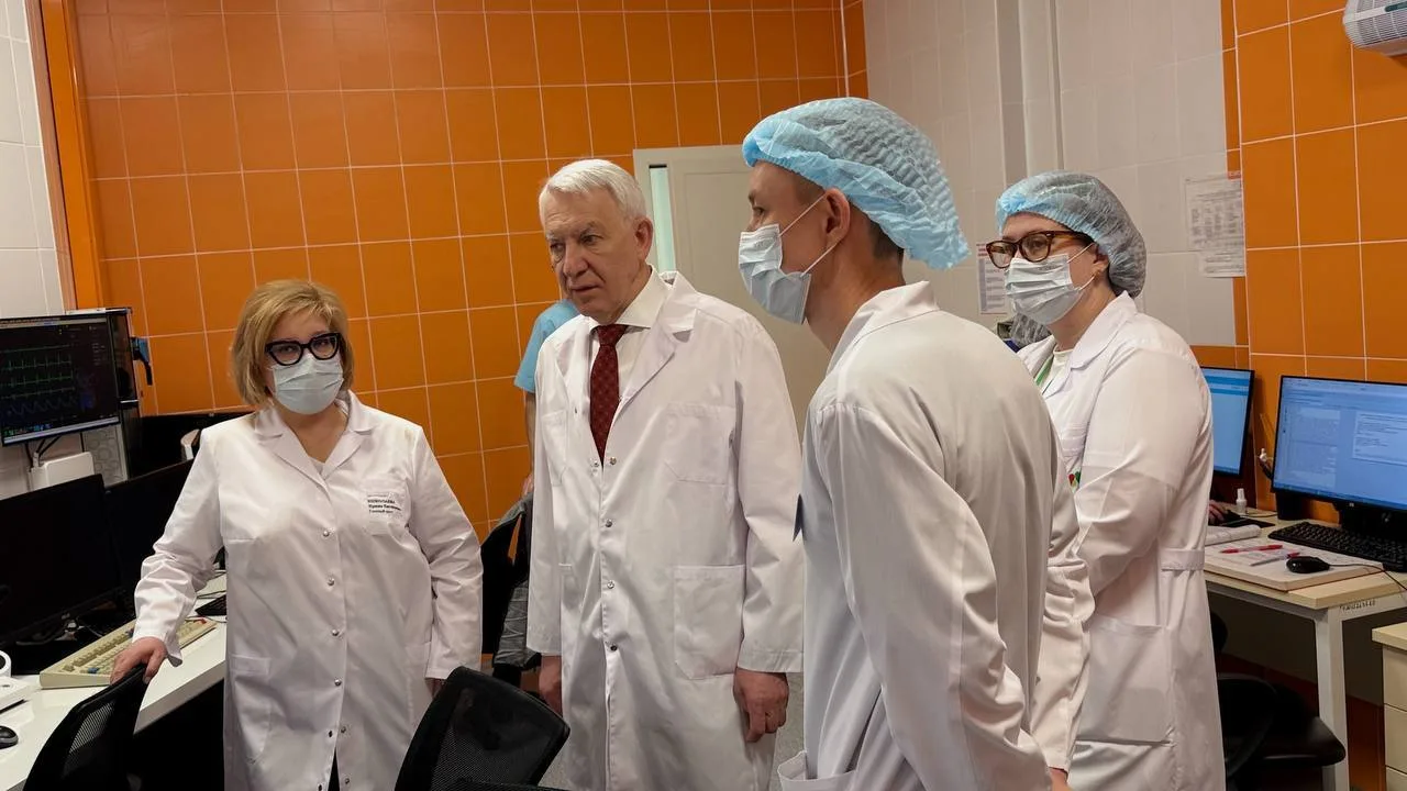 Главный врач Центра Ирина Николаева провела экскурсию по ключевым подразделениям, включая отделение рентгенхирургических методов диагностики и лечения, операционный блок кардиохирургии и отделение анестезиологии и реанимации. Особое внимание уделили новому кардиохирургическому корпусу, который начал свою работу в прошлом году. Евгений Владимирович высоко оценил современное оборудование и внедрение передовых технологий, таких как телемедицина и цифровые решения.