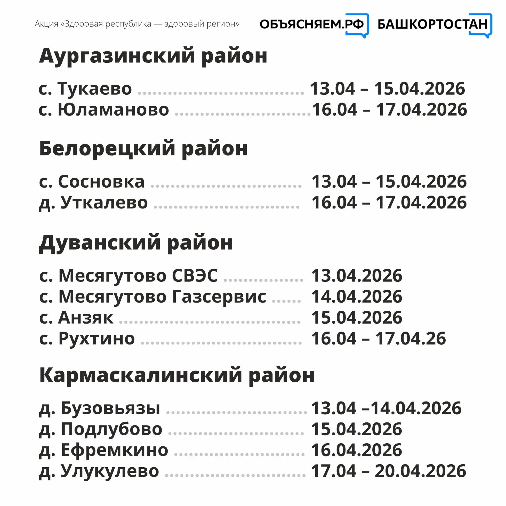 В этом году акция продлится до 11 сентября. Расписание можно посмотреть на сайте нашего Минздрава: https://health.bashkortostan.ru/activity/27005/