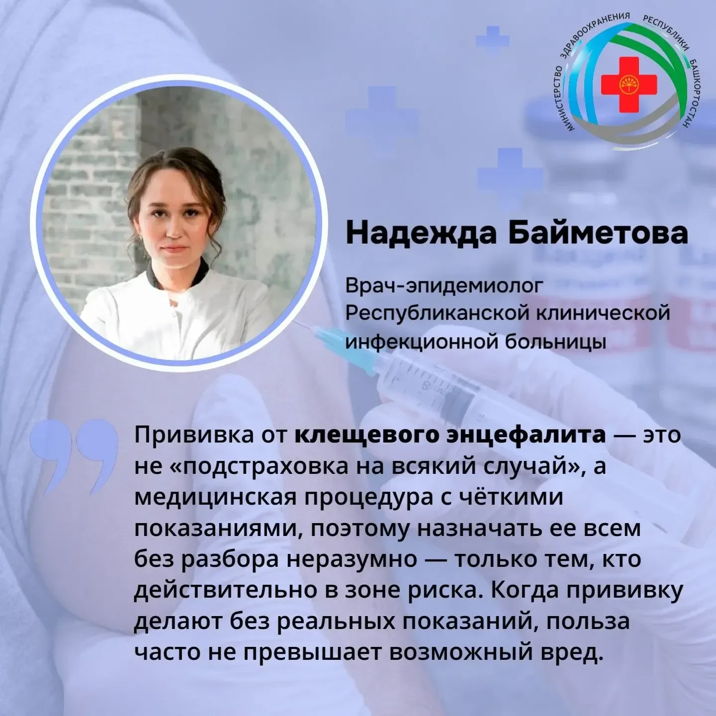 💬Прививка от клещевого энцефалита — это не «подстраховка на всякий случай», а медицинская процедура с чёткими показаниями, поэтому назначать его всем без разбора неразумно — только тем, кто действительно в зоне риска. Когда прививку делают без реальных показаний, польза часто не превышает возможный вред. Более того, массовый необоснованный спрос создаёт ажиотаж и отвлекает ресурсы от тех, кому вакцинация действительно жизненно необходима.