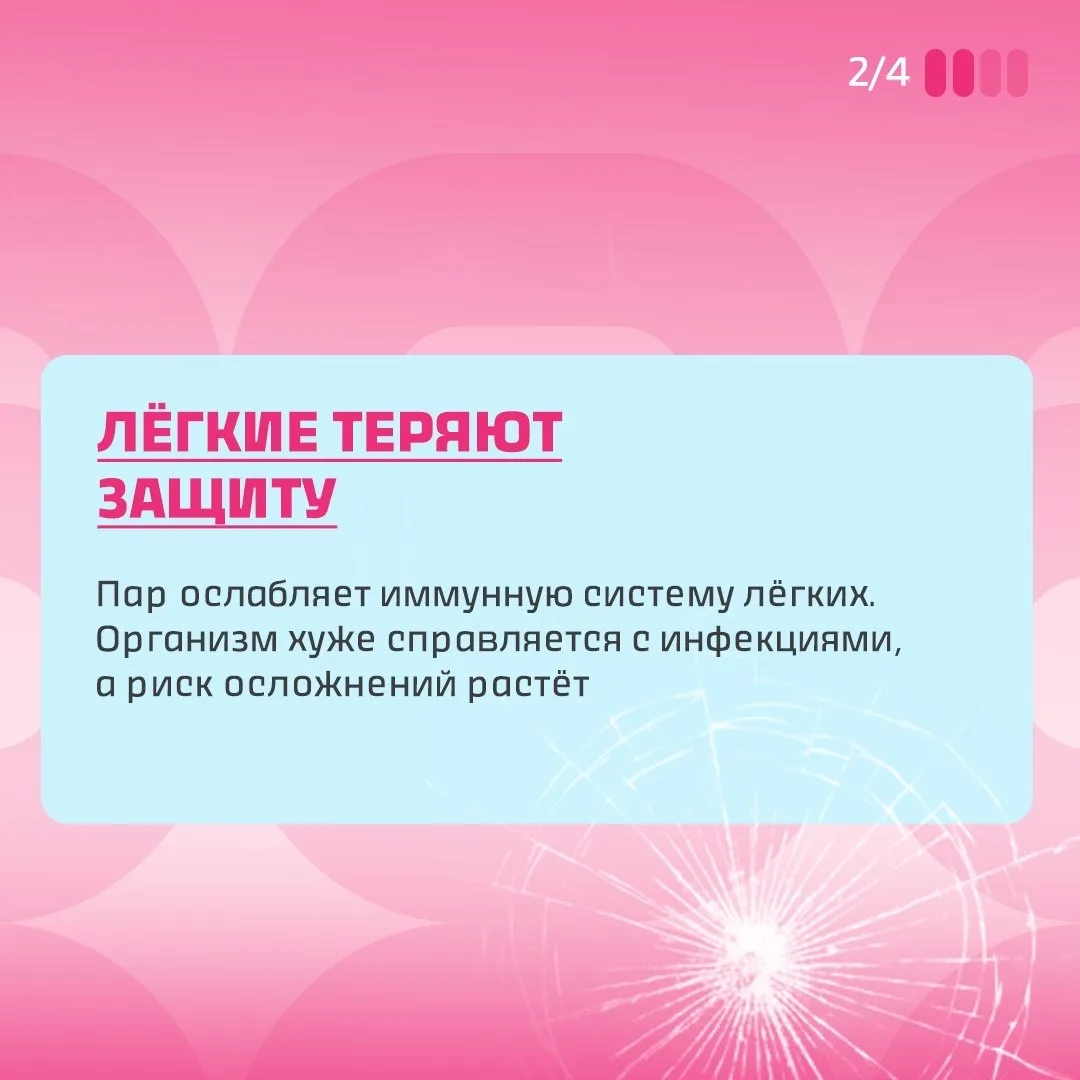 Появились новые доказательства вреда дуделок: ОТКАЗ органов, серьёзные инфекции… Специалисты проекта «Давай бросать» собрали в карточках основные последствия, о которых точно не расскажут в рекламе электронок.
