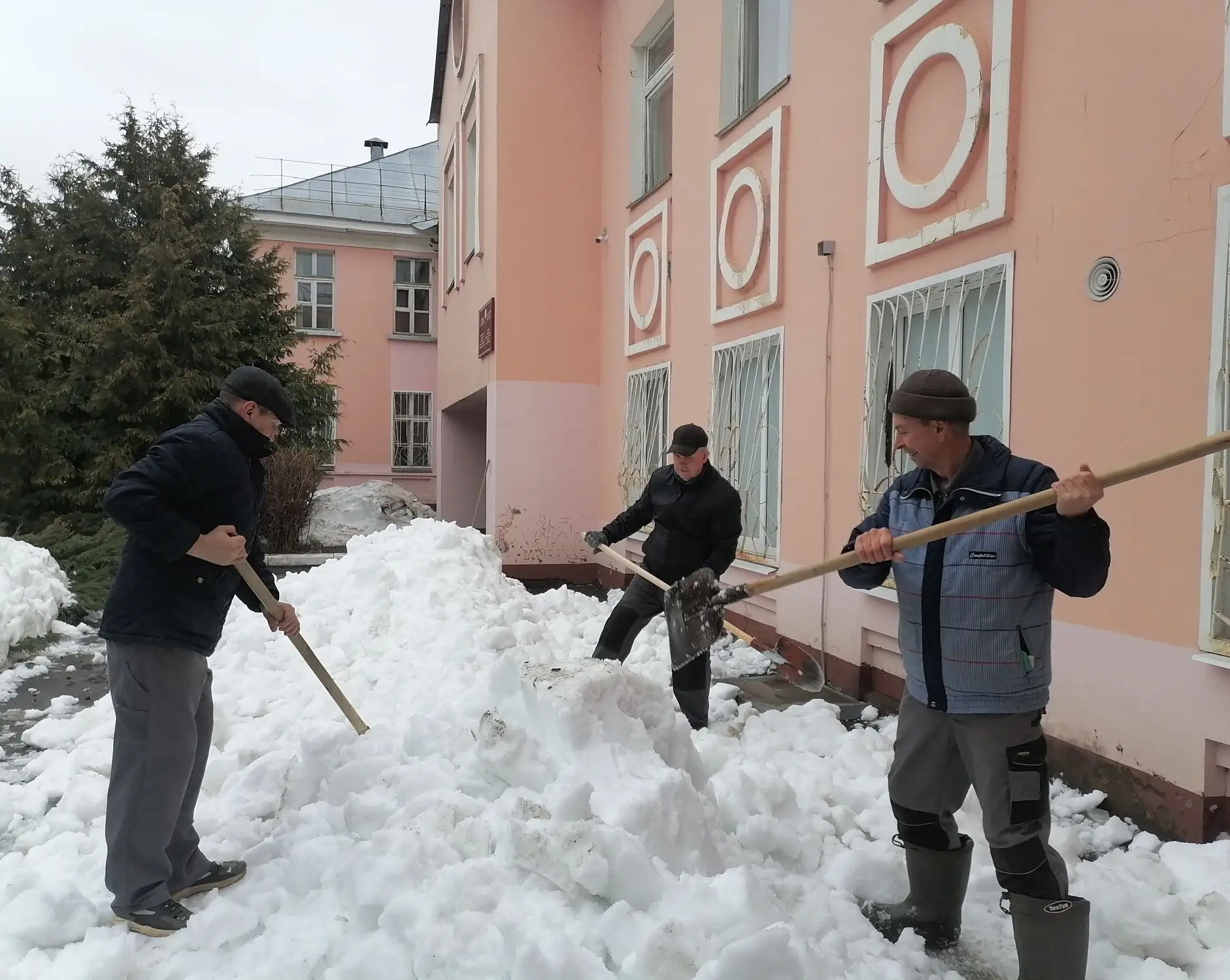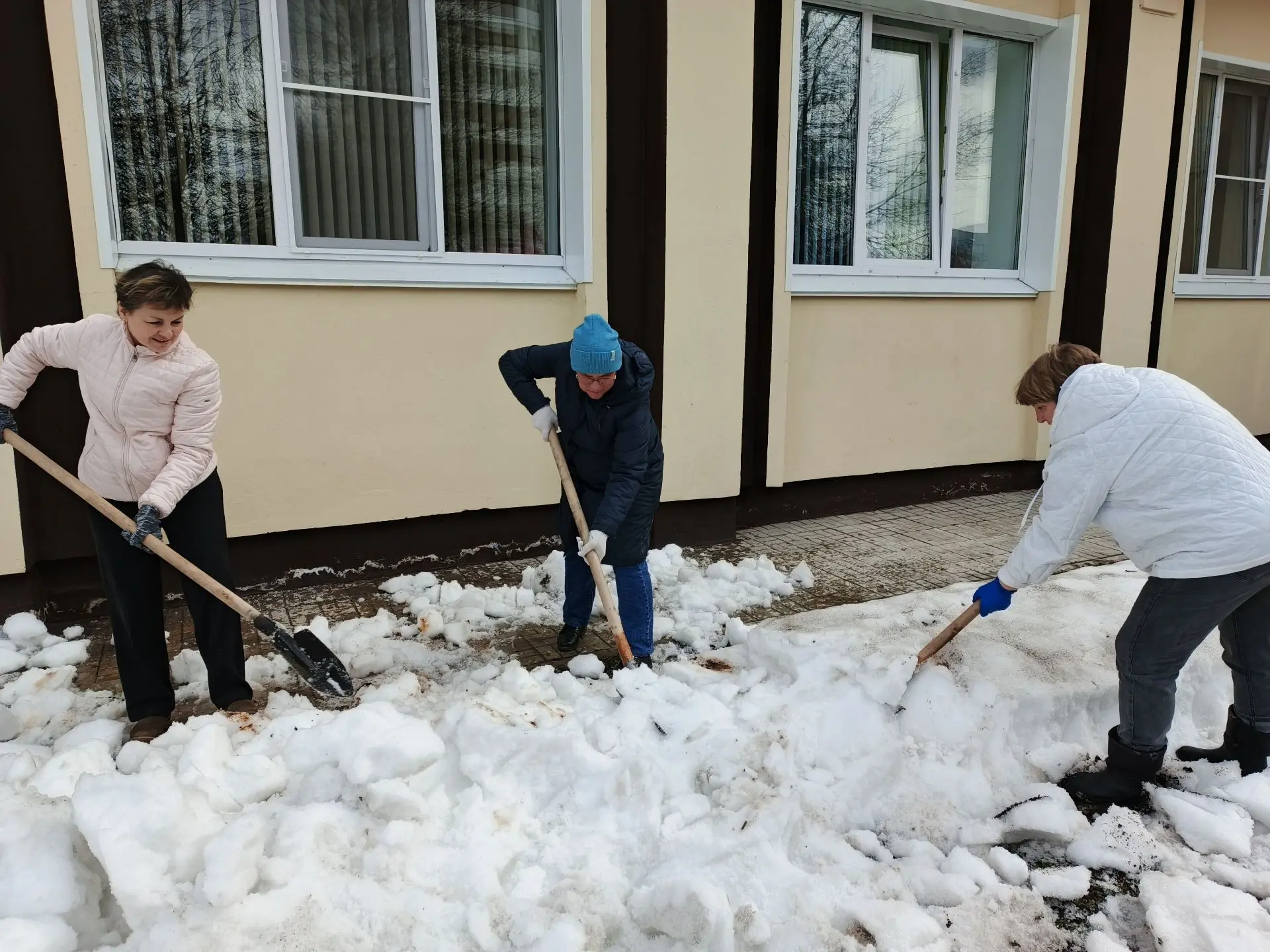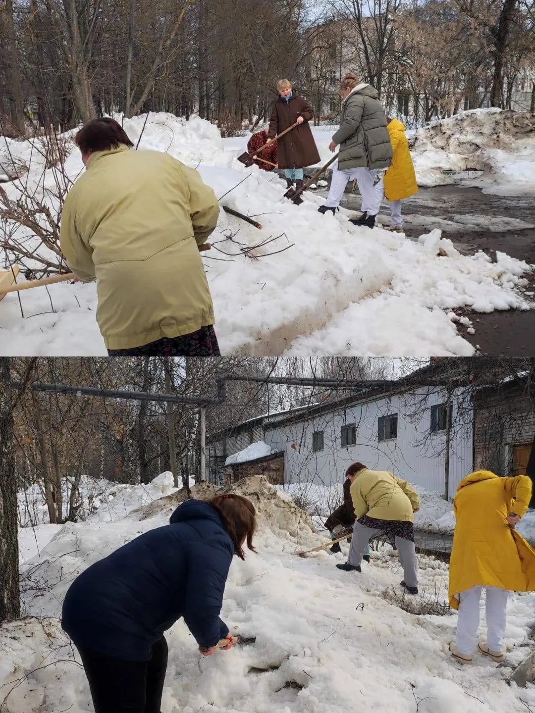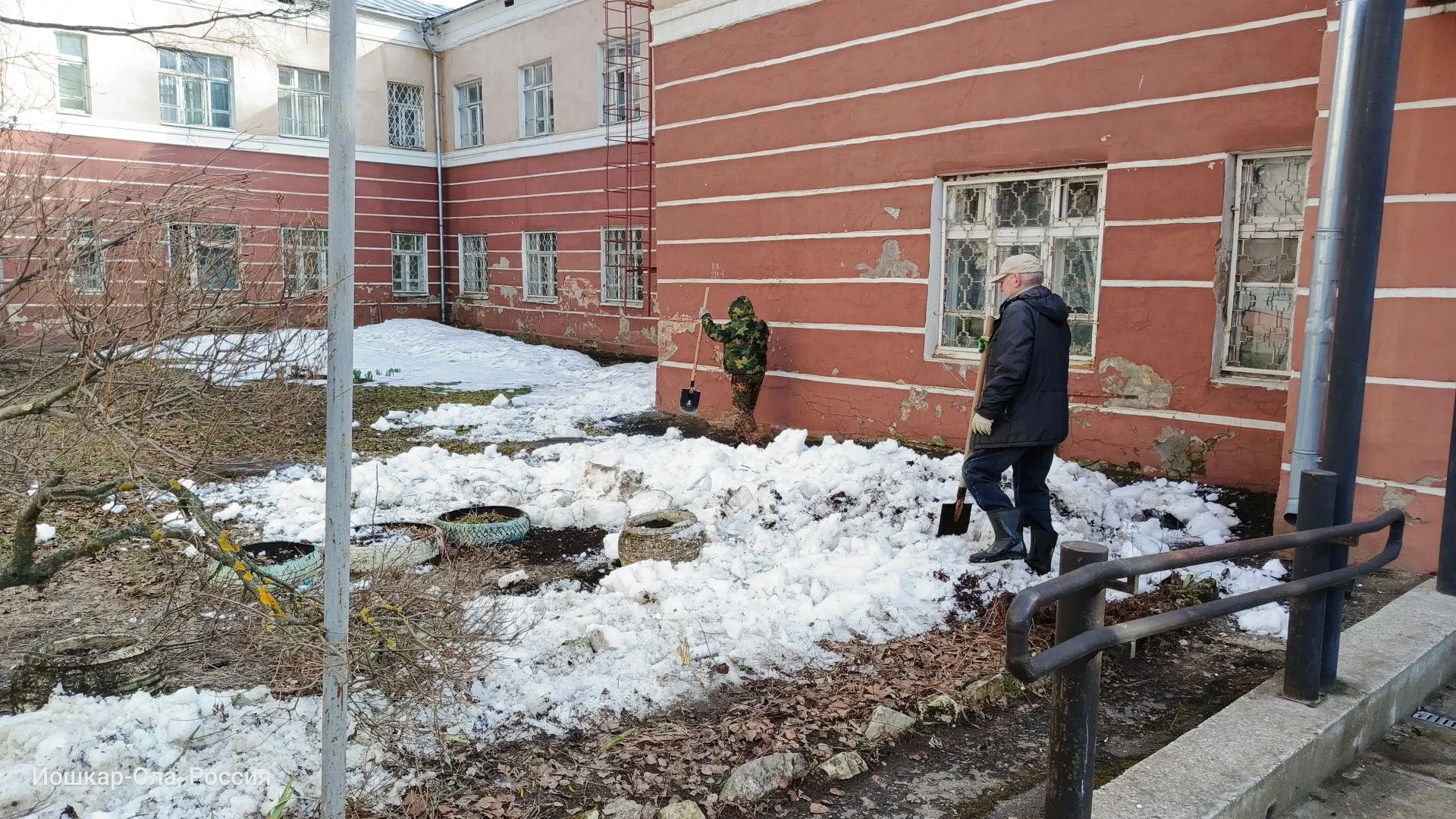 Медики рыхлили и разбрасывали снег, чтобы он быстрее таял, собирали вытаявший из-под снега мусор, приводили в порядок прилегающие территории.