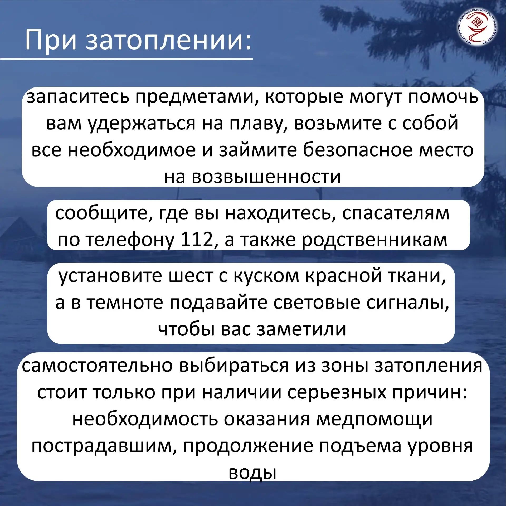 При планировании эвакуационных мероприятий особое внимание субъектам РФ следует уделять уязвимым категориям граждан, в частности беременным женщинам, детям в возрасте до одного года, маломобильным гражданам, пациентам с хроническими заболеваниями, в том числе находящимся на гемодиализе, чтобы при необходимости обеспечить им своевременное оказание медицинской помощи, отметил Министр.