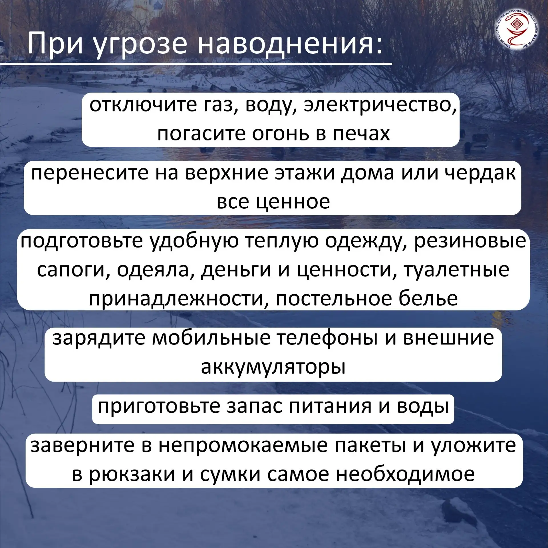 Глава Минздрава России подчеркнул необходимость заблаговременной оценки рисков подтоплений и нарушений транспортной доступности.