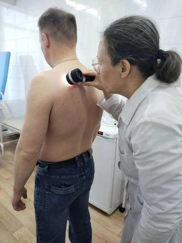 Работники завода имели возможность в этот день пройти диагностику заболеваний кожи – с помощью дерматоскопии их обследовала врач Республиканского кожвендиспансера Наталия Болгова.