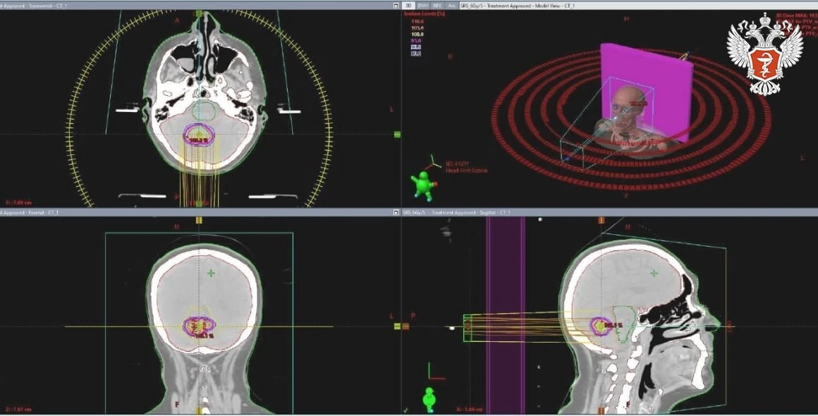 Единственным и самым эффективным методом стала стереотаксическая лучевая терапия. Этот метод позволяет воздействовать на опухоль высокими дозами радиации, не повреждая здоровые ткани.