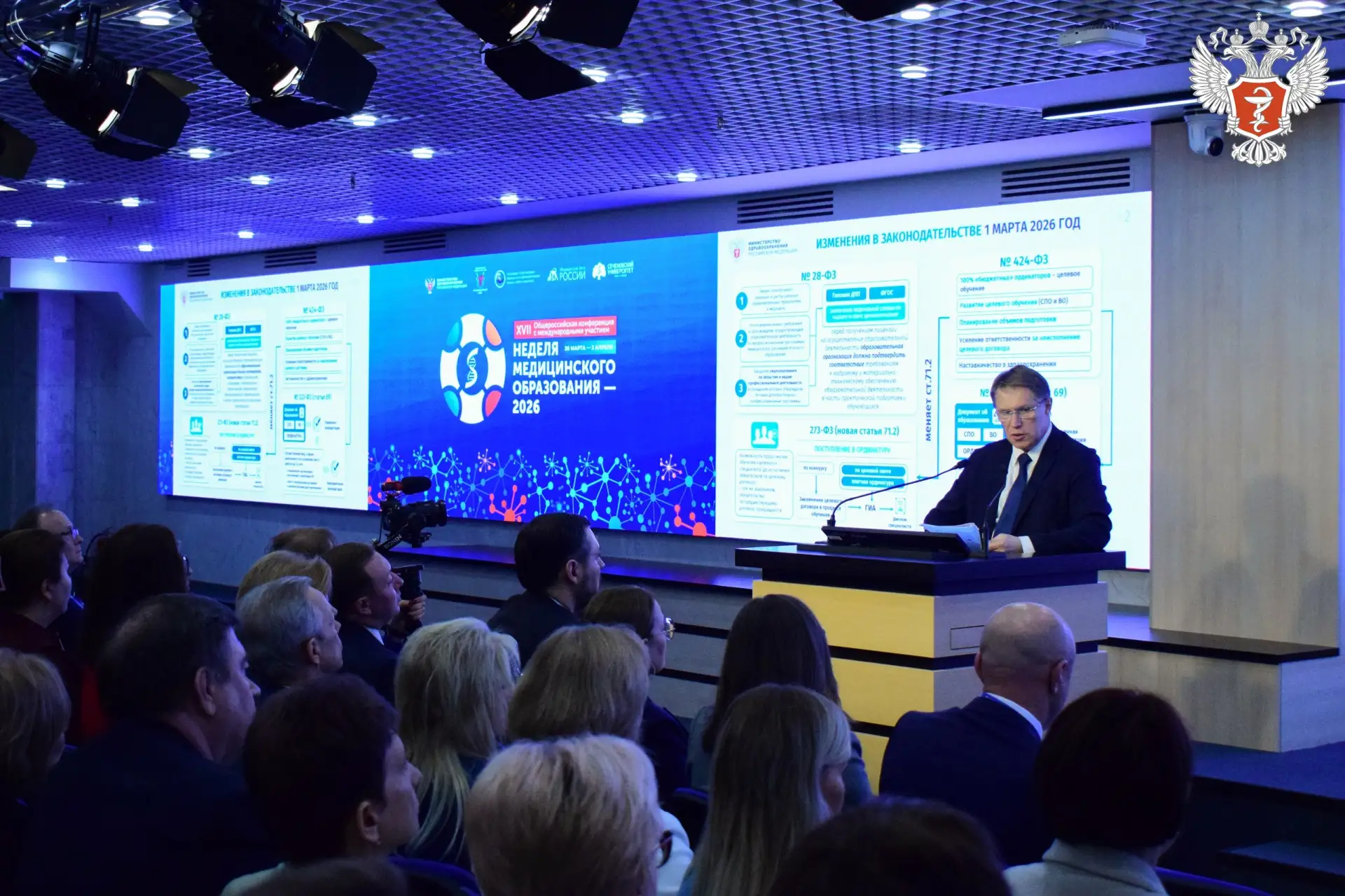 Министр здравоохранения РФ Михаил Мурашко принял участие в открытии XVII общероссийской конференции с международным участием «Неделя медицинского образования — 2026».
