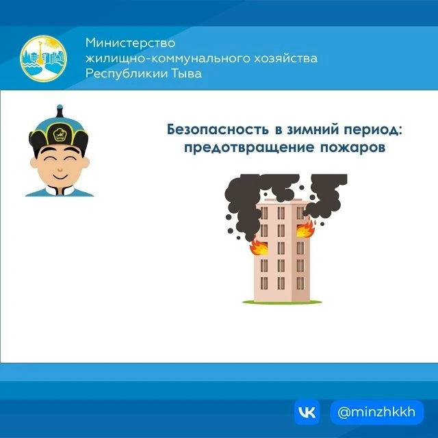 Внимание! Безопасность в зимний период: предотвращение пожаров Уважаемые жители и гости Республики Тыва!С наступлением холодов возрастает риск возникновения пожаров. Чтобы минимизировать возможные риски, необходимо соблюдать следующие правила: