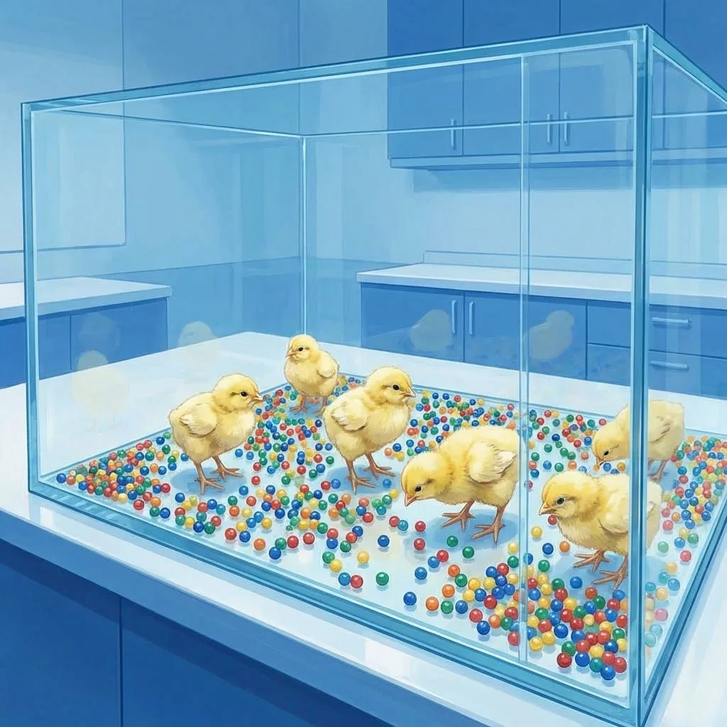 Учёные провели эксперимент с цыплятами, которых учили отличать корм от бусин на специальном «бусиничном полу». Птицы методом проб и ошибок формировали категорию «несъедобное». Но главное открытие ждало впереди: исследователи закрывали птицам один глаз и выяснили, как запоминание распределяется между полушариями.