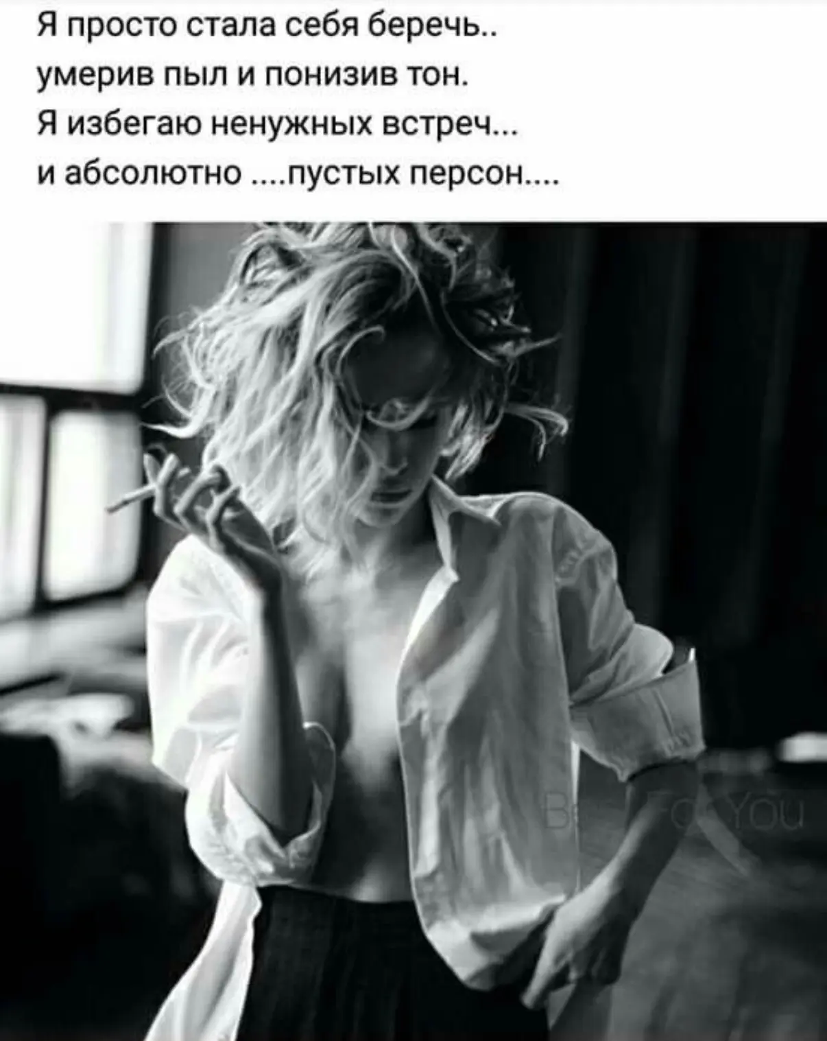 1 - Не держись за людей, которым без тебя проще. Настоящее спокойствие приходит в тот момент, когда ты перестаёшь удерживать тех, кто сам тебя не выбирает.