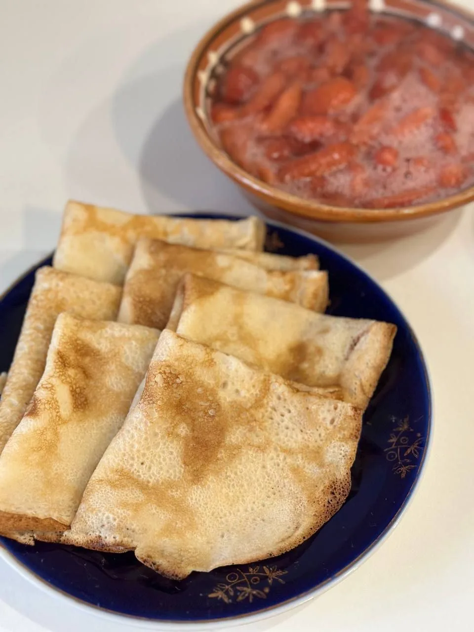 2️⃣Перед первым блинчиком слегка смазать маслом сковородку.