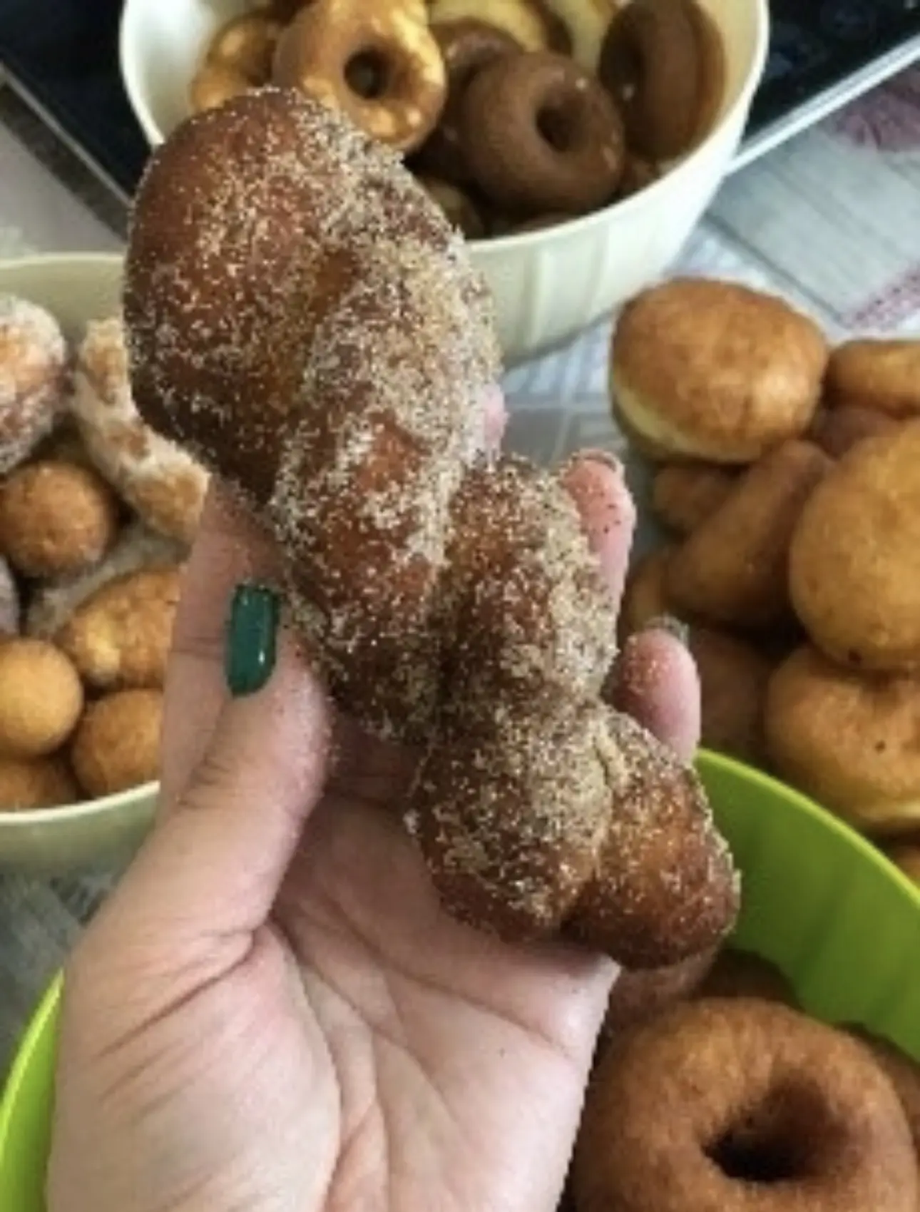 2️⃣Раскатать оставшееся тесто, по середине проделать отверстие.