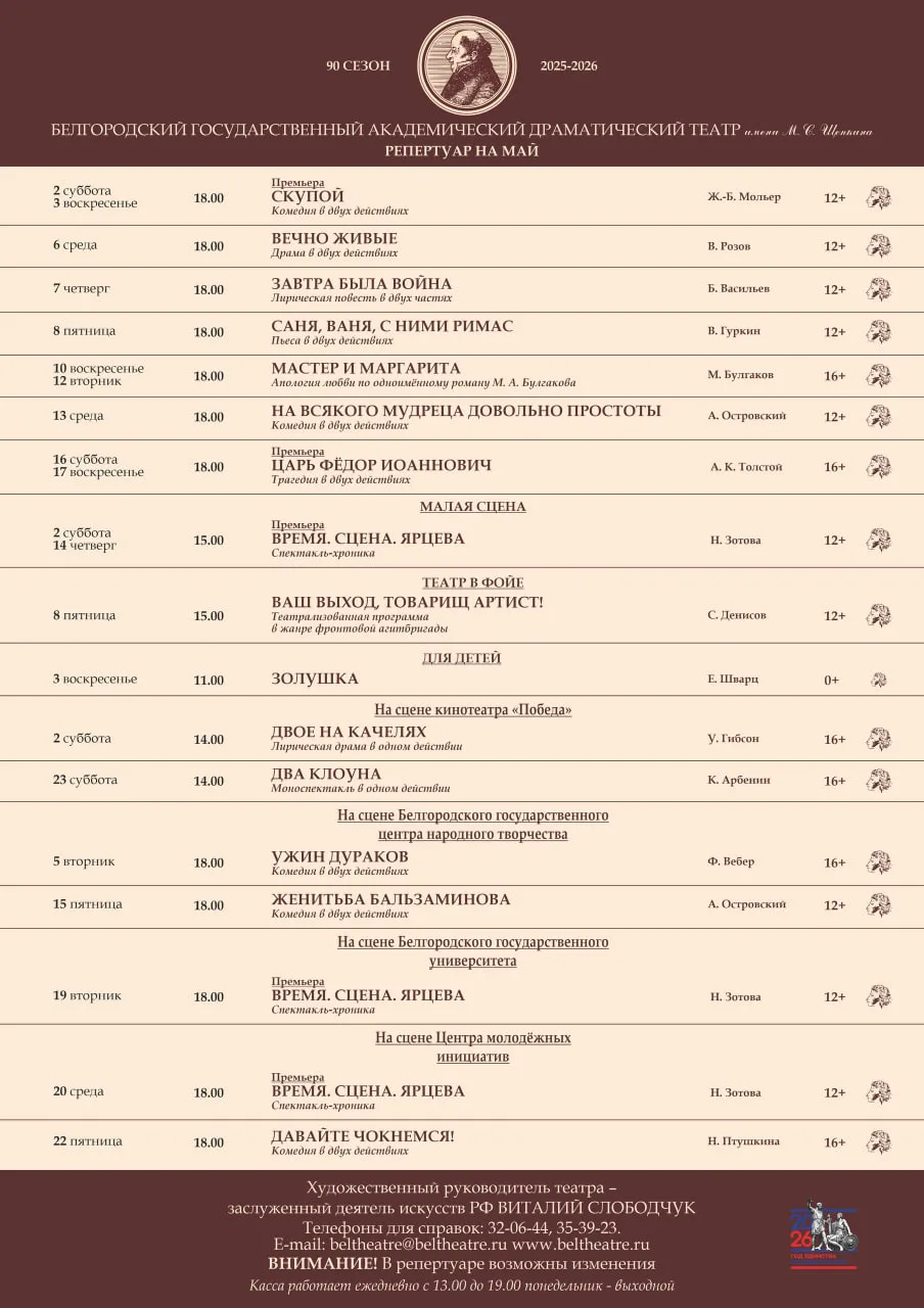 Майскую премьеру приурочили к 90-летию Белгородского драмтеатра и 430-летию Белгорода.