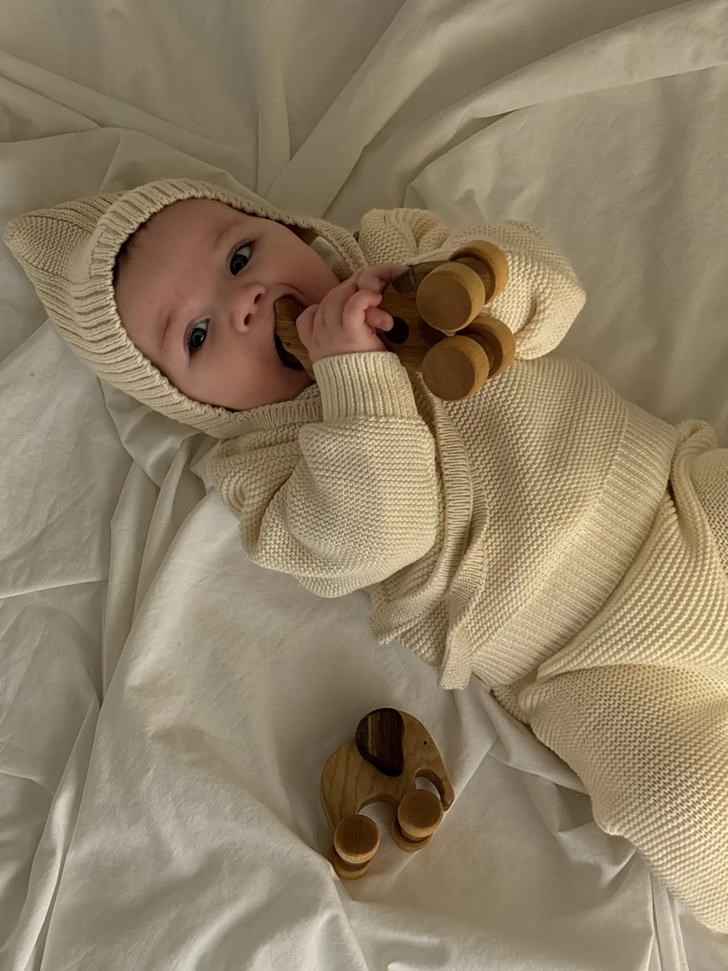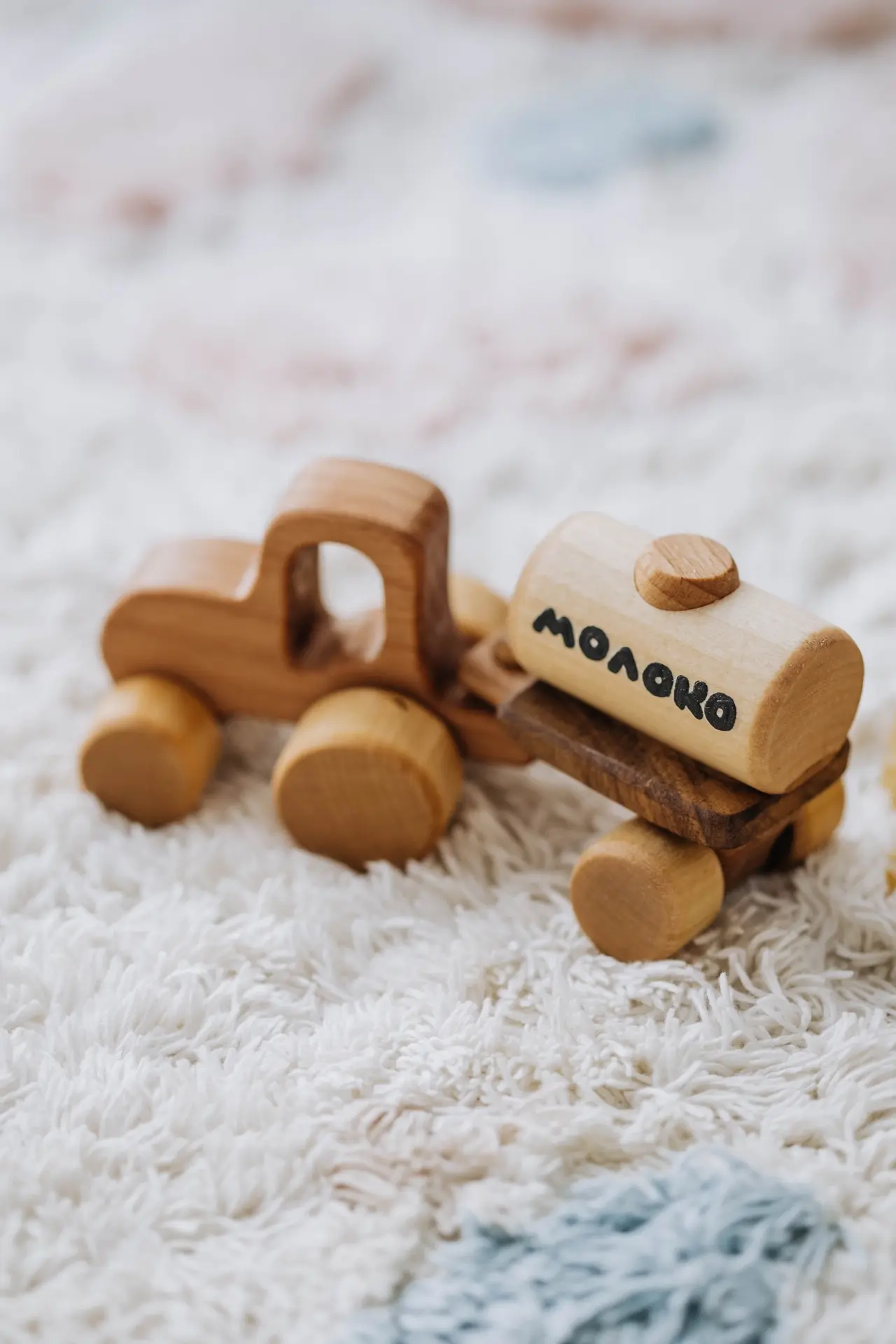 Ничего лишнего, только чистая радость игры! Малыш и деревянные машинки — идеальный дуэт. Смотрите, как загораются его глаза, а с помощью простой игрушки обычный день превращается в увлекательное приключение на гоночной трассе или масштабной стройплощадке.
