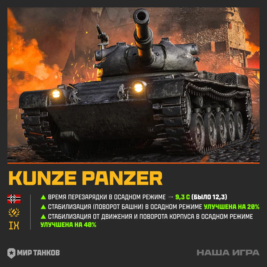 ➕ Перезарядка орудия — 11.5 с (было 14),