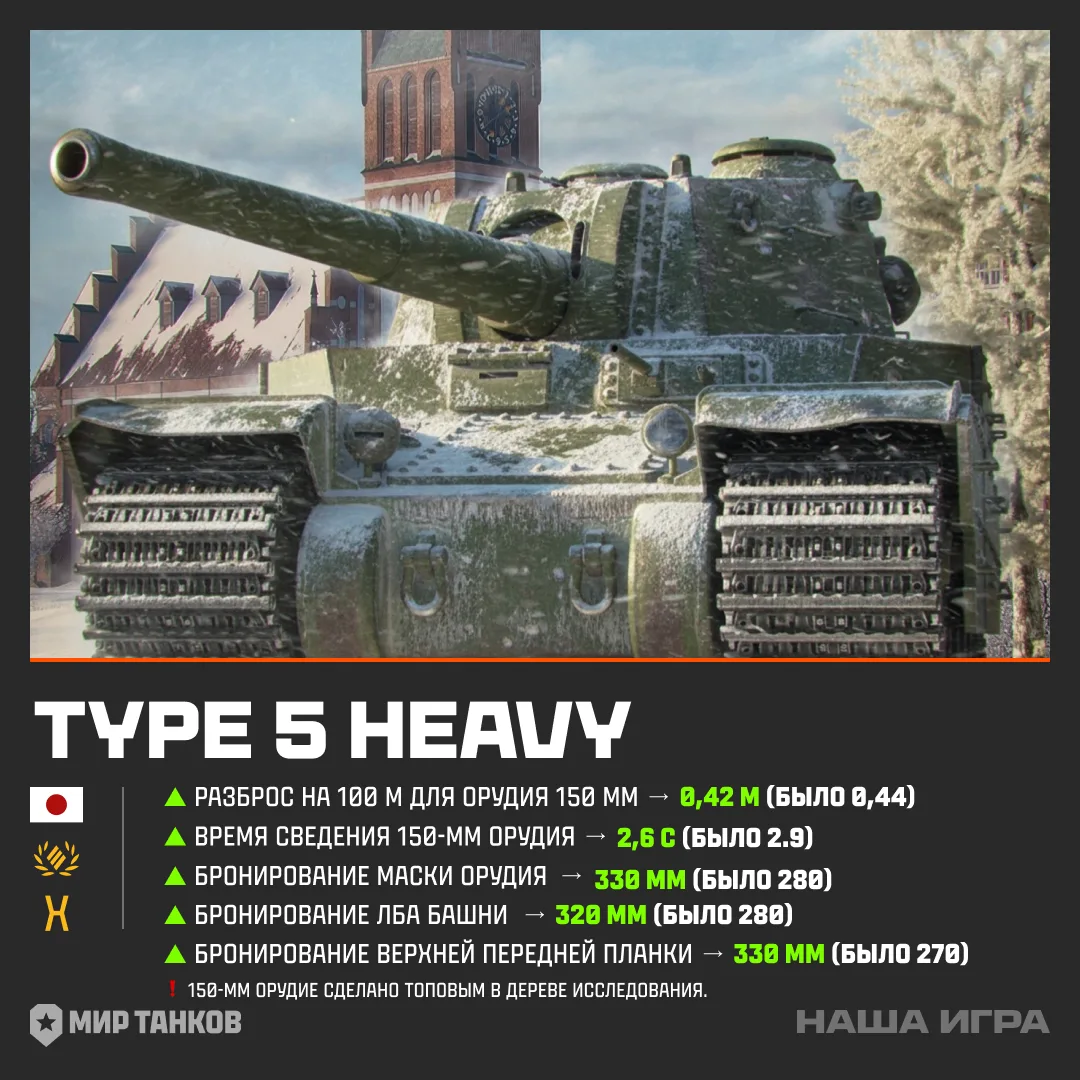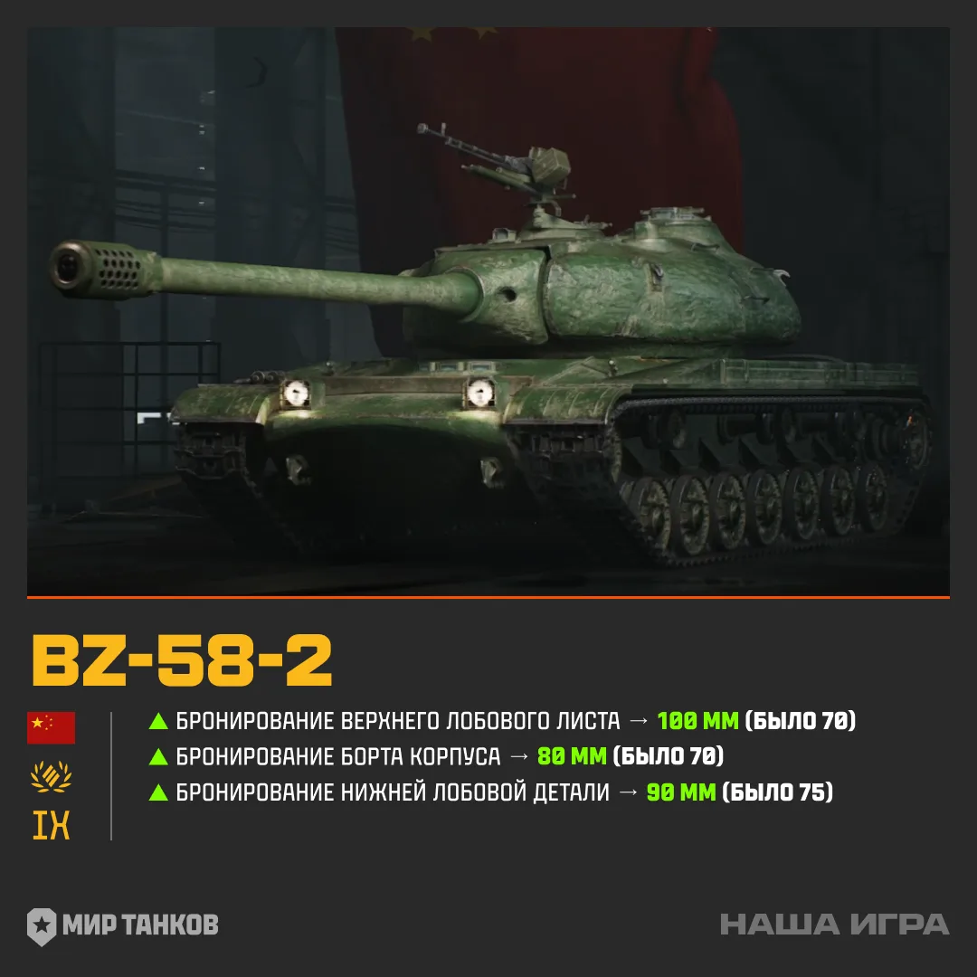 ➕ Броня бортов корпуса — 80 мм (было 70),