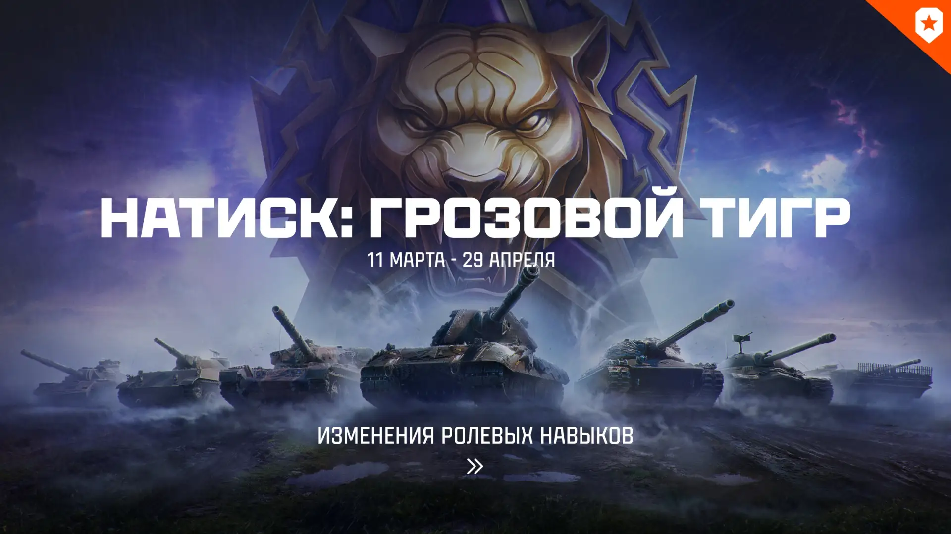 🐯 Натиск: «Грозовой тигр» — балансные изменения ролевых и тактических навыков, а в магазин события добавится новый танк Vandal.
