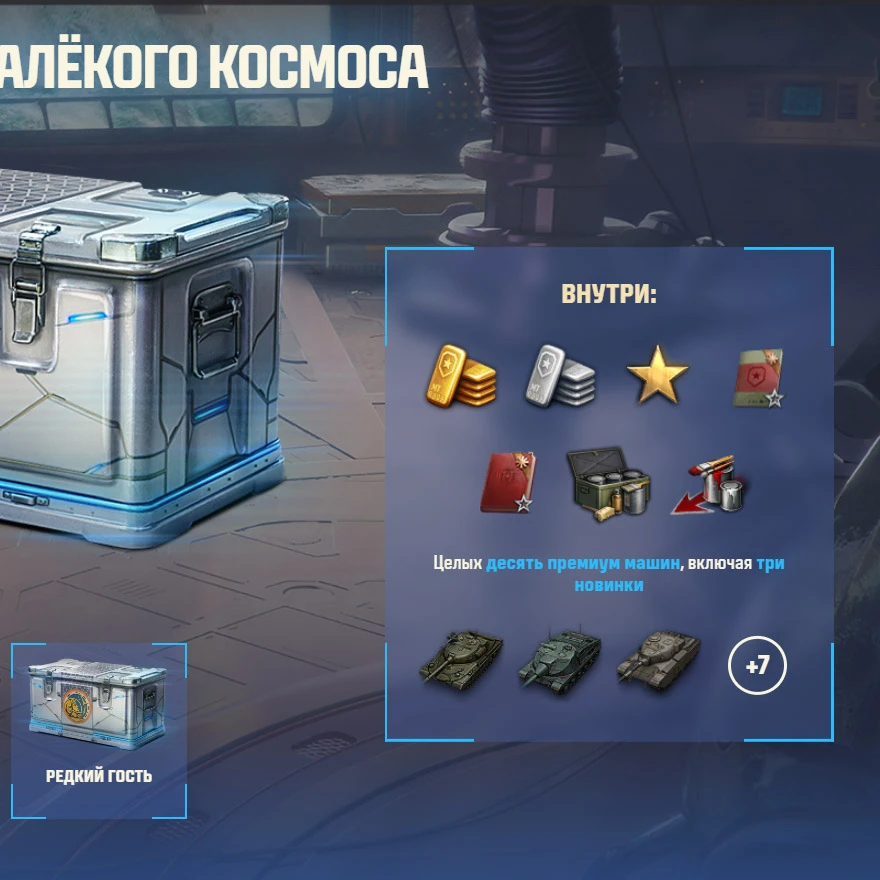 👍 Для этих контейнеров действует механика гарантированной награды – в 50-ом контейнере техника выпадет гарантированно. Вы получите ту машину, которой ещё нет в вашем Ангаре и которая недоступна к восстановлению.