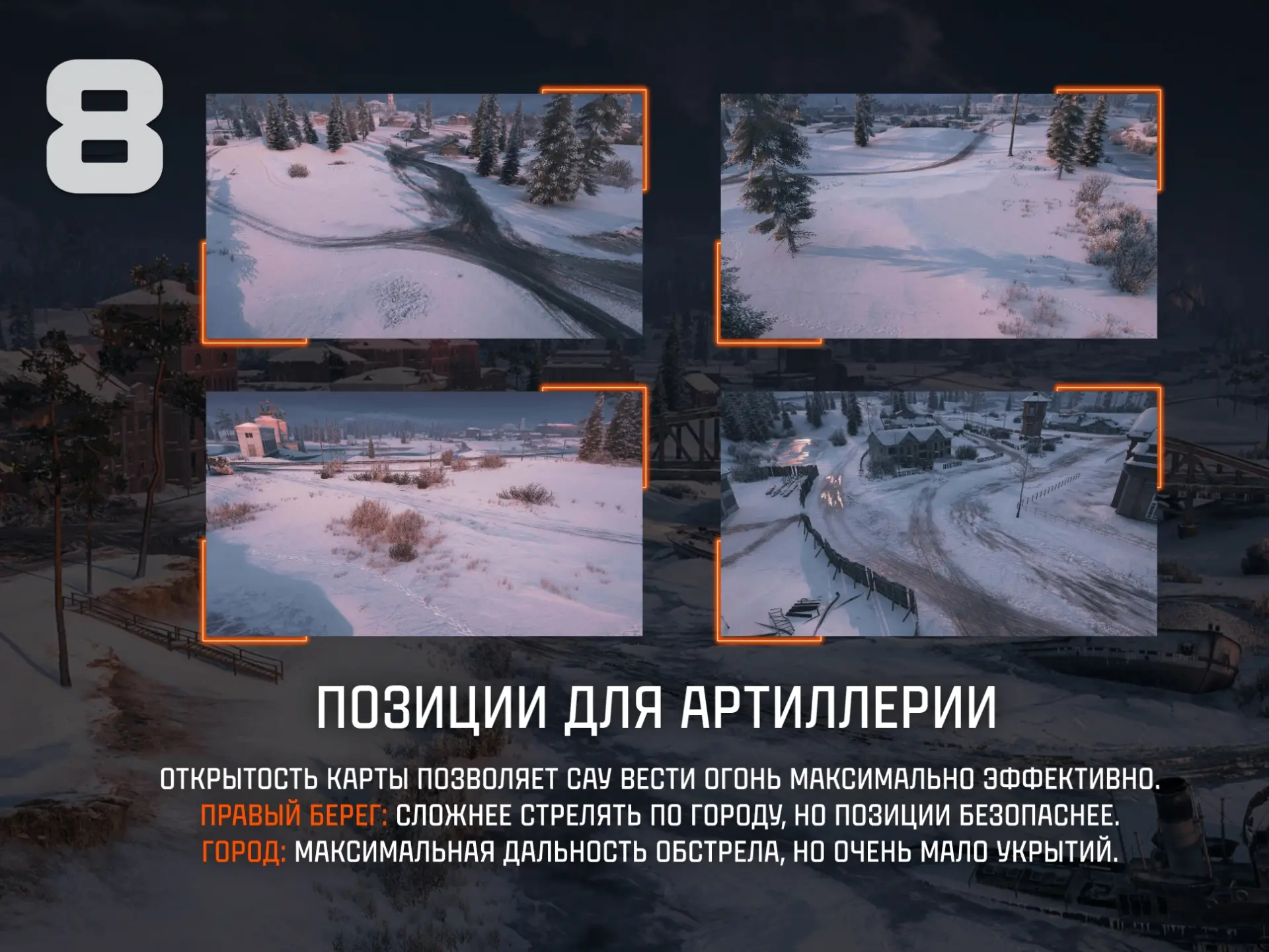 • Множество укрытий и перепады высот обеспечивают высокую вариативность игрового процесса, способствуя неожиданным манёврам и безопасной смене флангов.