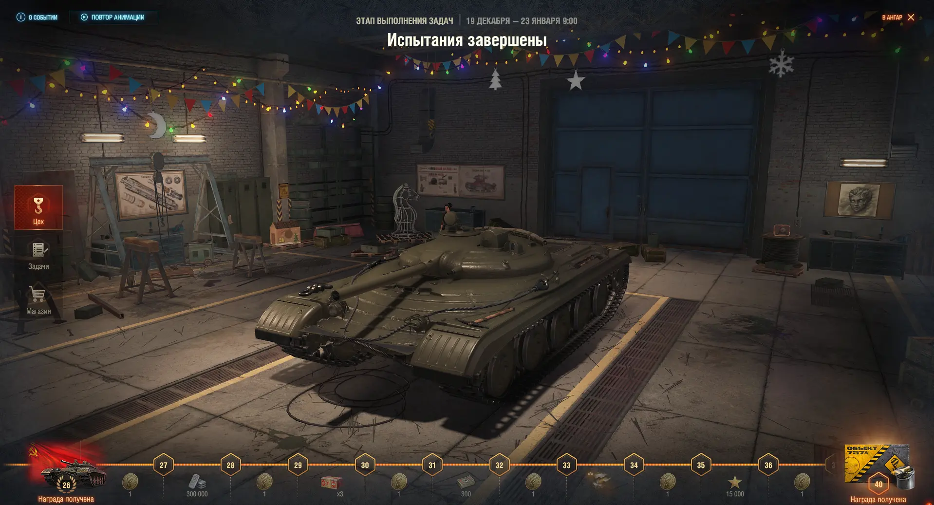 🏅 В наградах: новогодние контейнеры, свободные жетоны, экспериментальное оборудование, боны, свободный опыт, серебро и, конечно, 2D-стиль "Испытательный стенд"