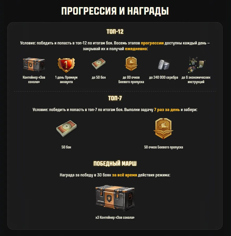 Все игроки, которые проведут не менее 15 боёв в рамках турнира и выполнят задания Диктанта Победы, получат гарантированную награду.