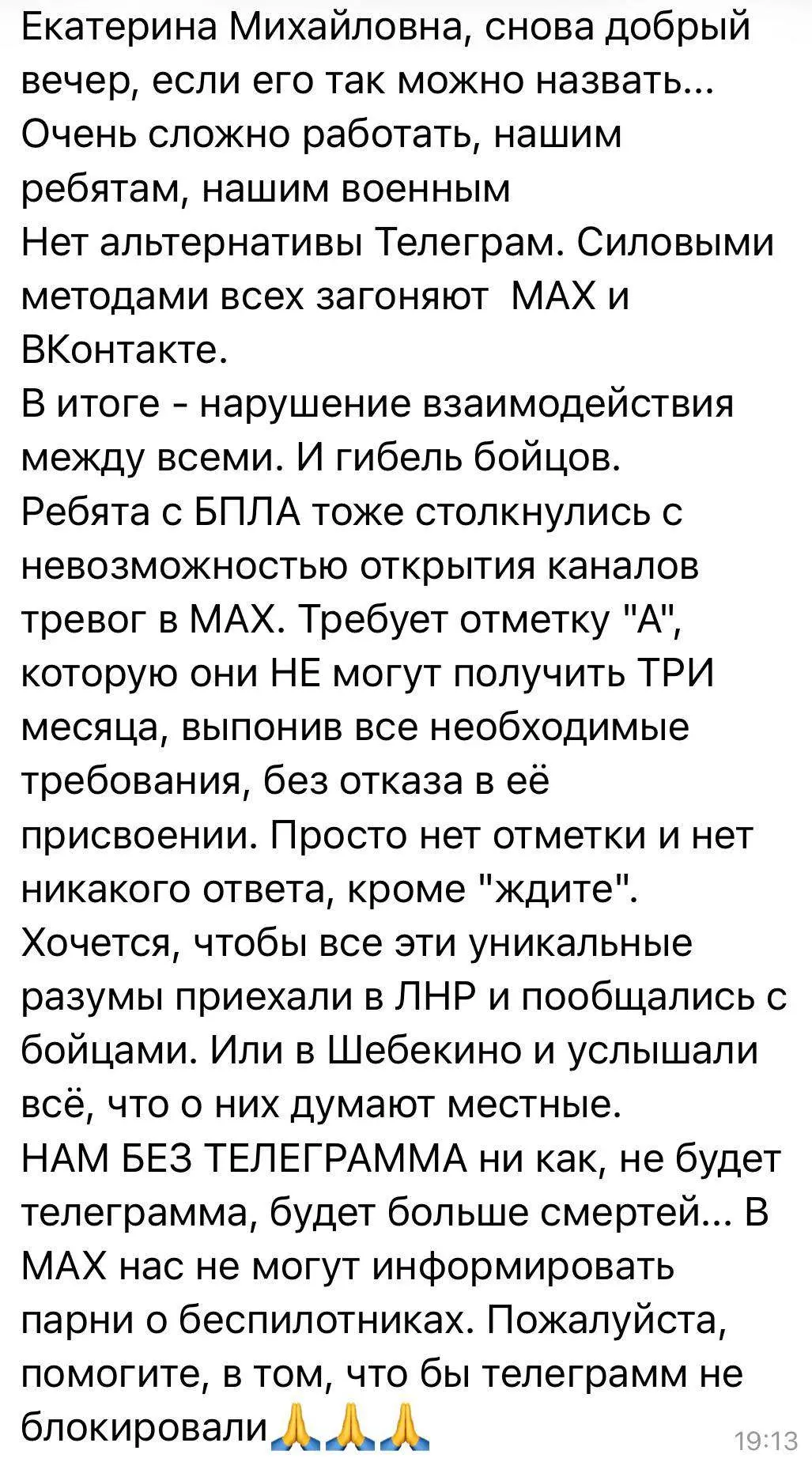 «Есть много фактов, что доступ к переписке в Telegram имеют иностранные спецслужбы, которые используют эти данные против российской армии».