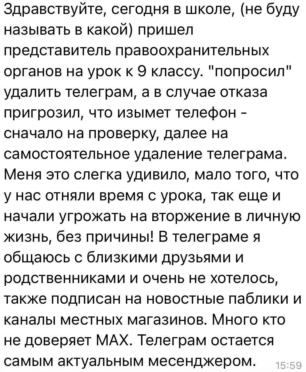 «Конкуренция всегда нужна. И я уверен, что она всегда будет. В отношении Telegram и других мессенджеров проблема только одна - соблюдение российских законов. Руководство их стран не давало [владельцам ресурсов] возможности соблюдать наши законы.
