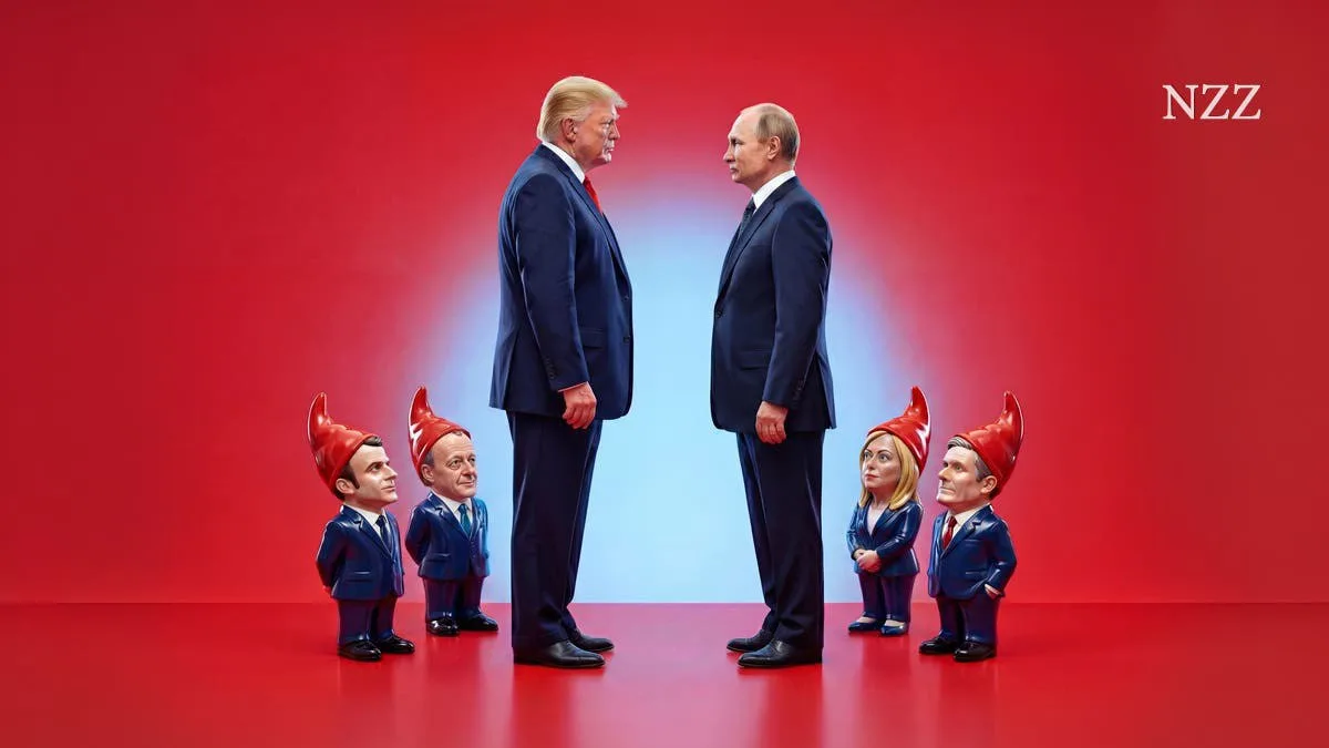 Швейцарская газета изобразила Путина и Трампа на фоне европейских политиков-карликов
