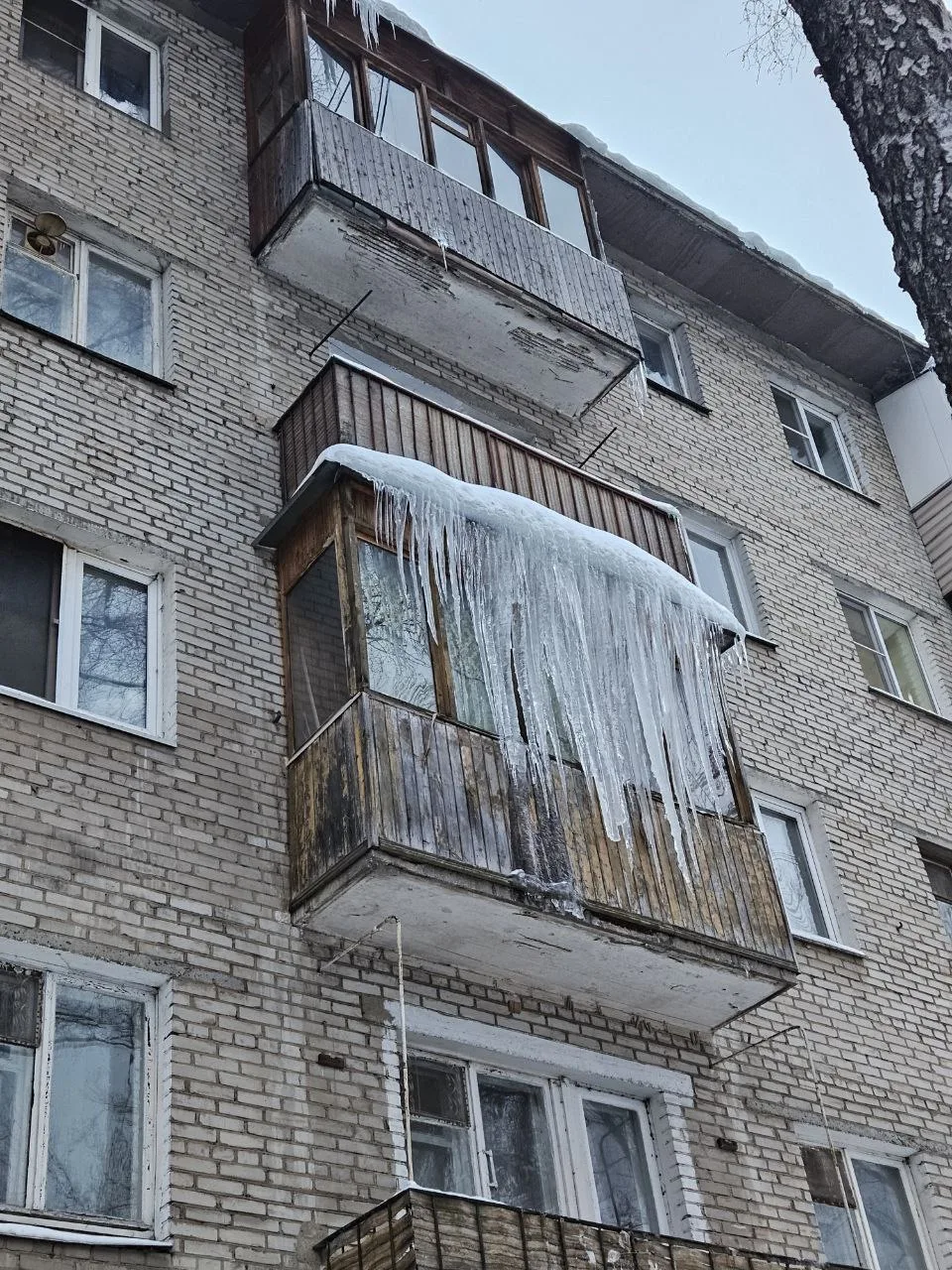 🧊 Огромные сосульки замечены на Олимпийском проспекте 15к7 в Мытищах