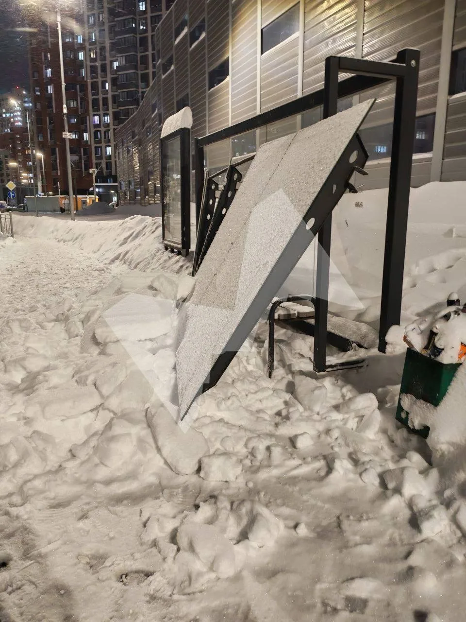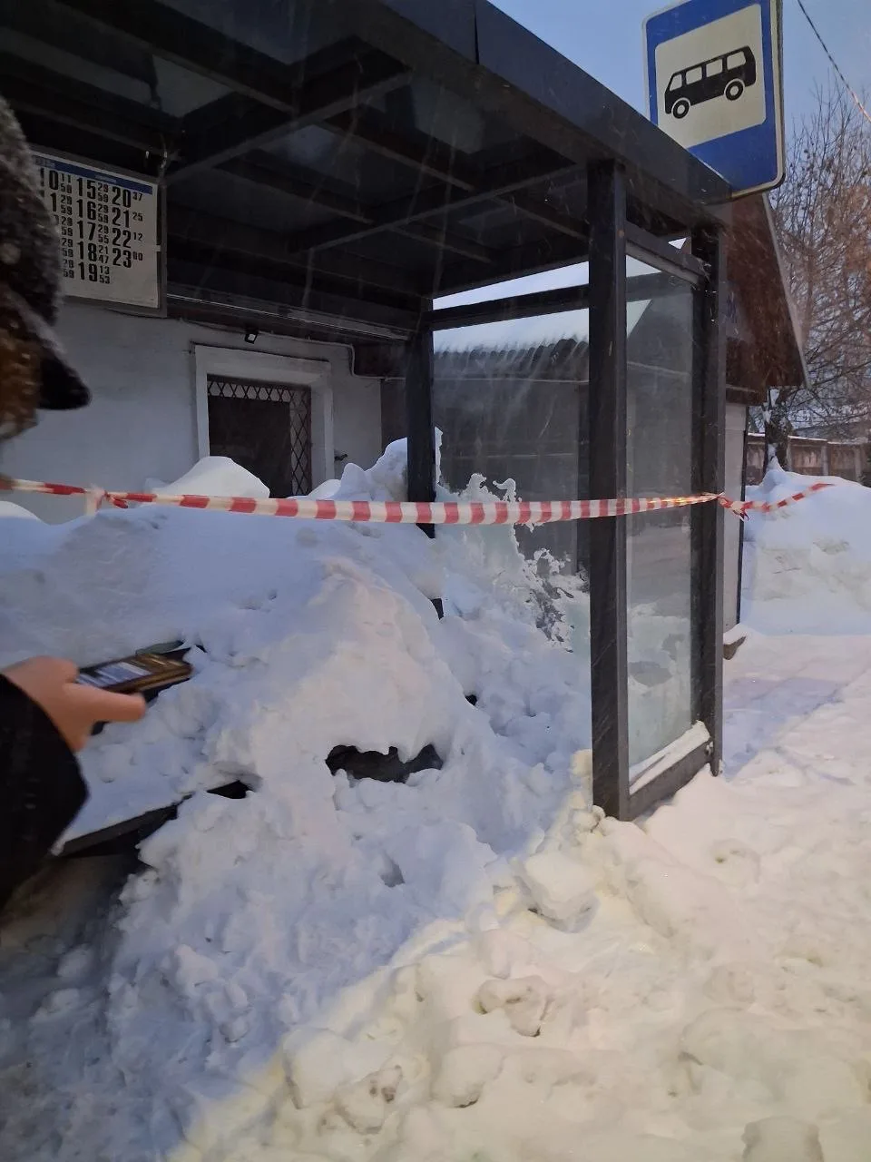 😱 Стеклянная остановка обрушилась в Мытищах под толщей снега.