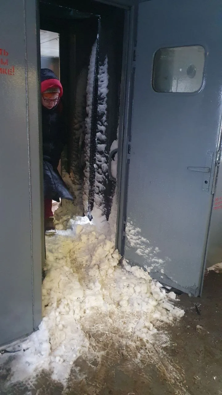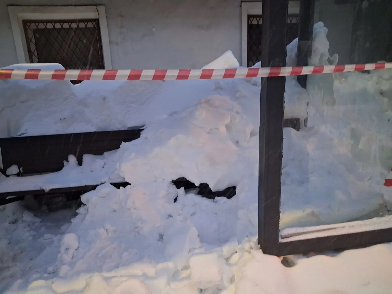 😬 Сегодня утром в Пушкино от тяжести снега обвалился козырек