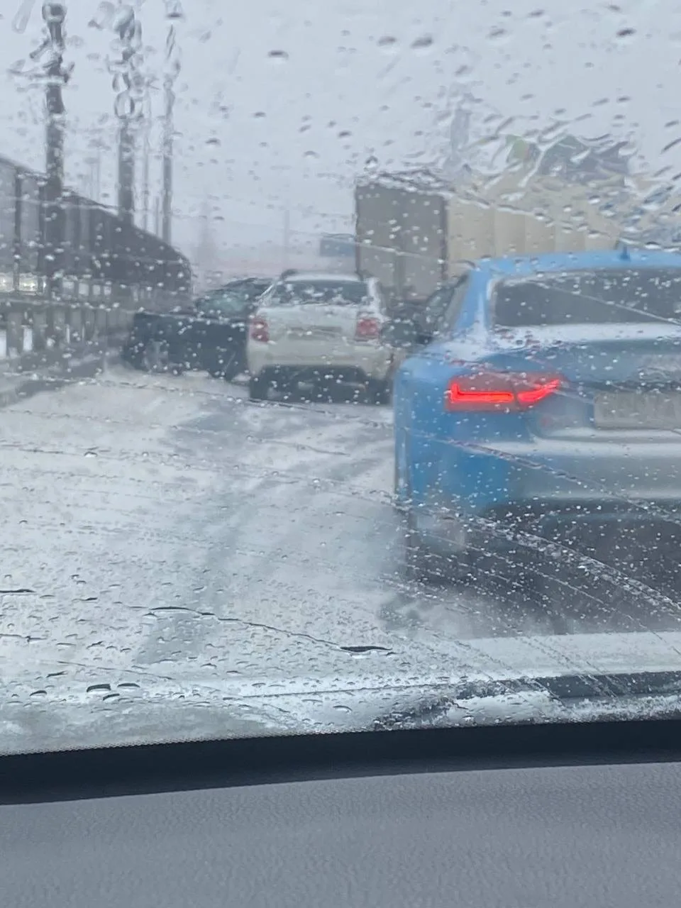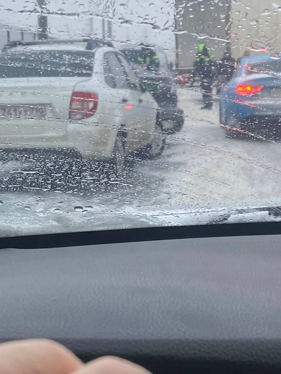 На этом месте собрались десятки машин, водителям приходится вызывать эвакуаторы