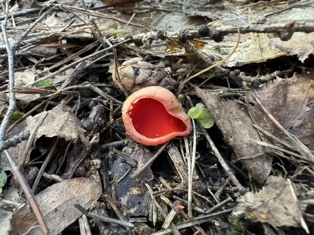 🍄 В Мытищинском лесопарке заметили редкий весенний гриб — саркосцифу, или «огненный цветок»