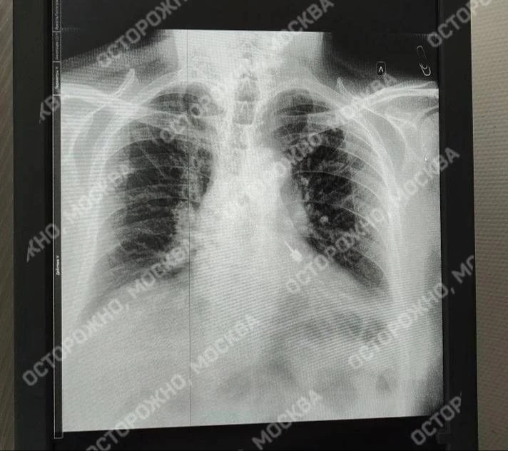 Мужчина лечил зубы в частной клинике. В процессе лечения стоматологический бур попал в дыхательные пути. Пациент обратился в Мытищинскую больницу — рентген показал, что инструмент застрял в левом бронхе.