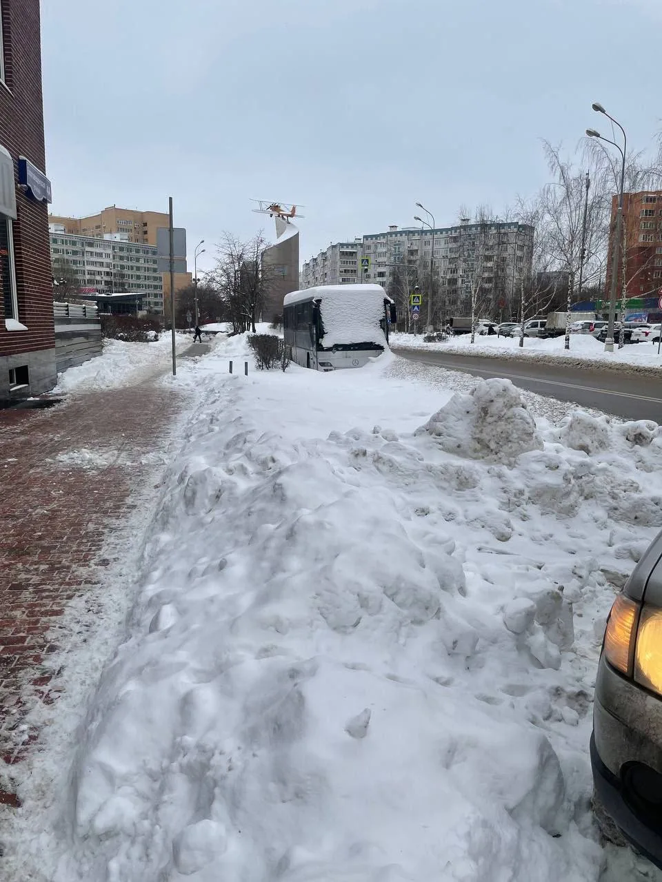 🤔 Вот так чистят снег около автобусной остановки в микрорайоне Дружба, Мытищи