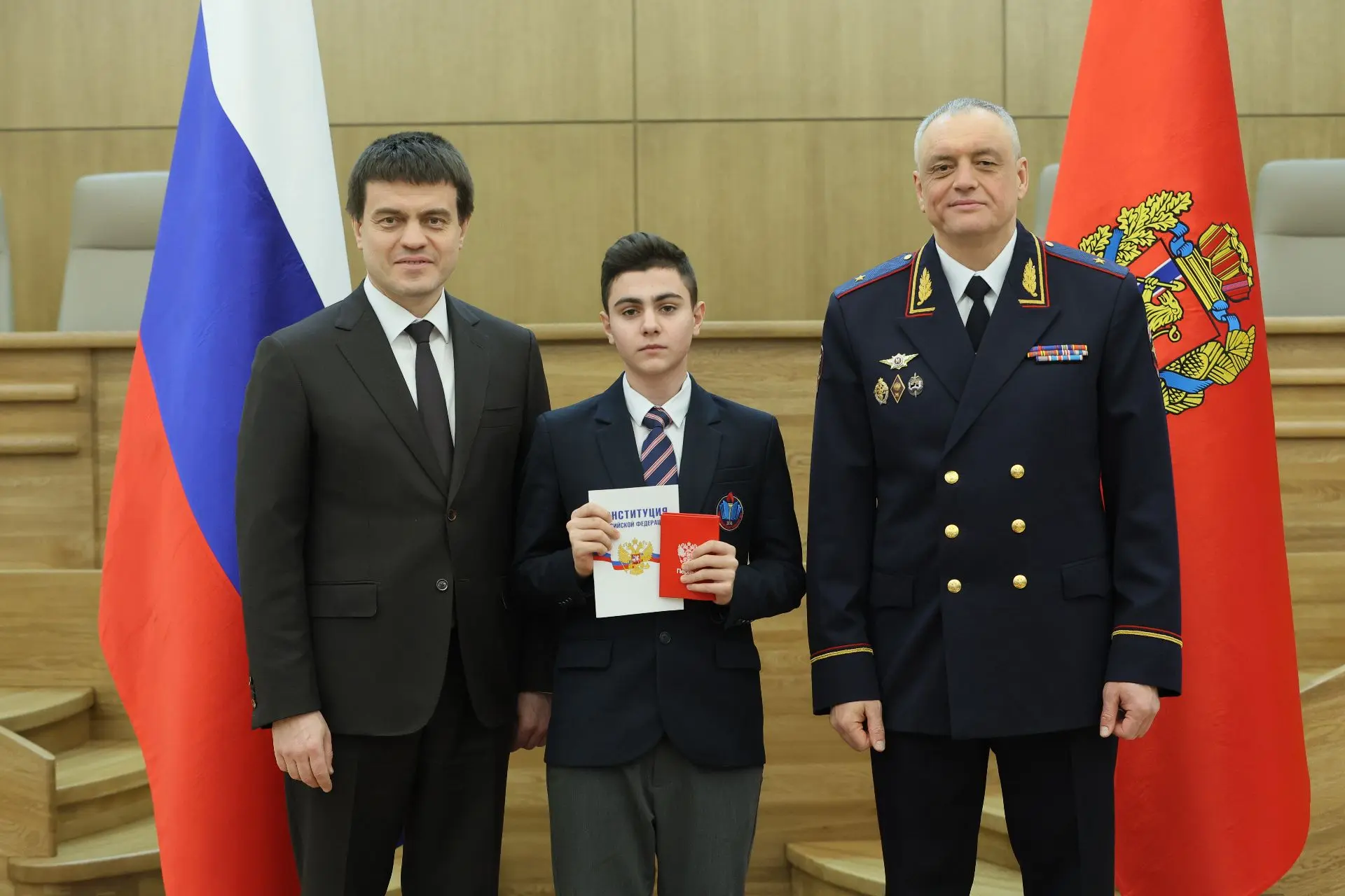 По традиции в День Конституции вручили школьникам их первые паспорта. Торжественную церемонию провели вместе с начальником Главного управления МВД России по краю Александром Соловьёвым.