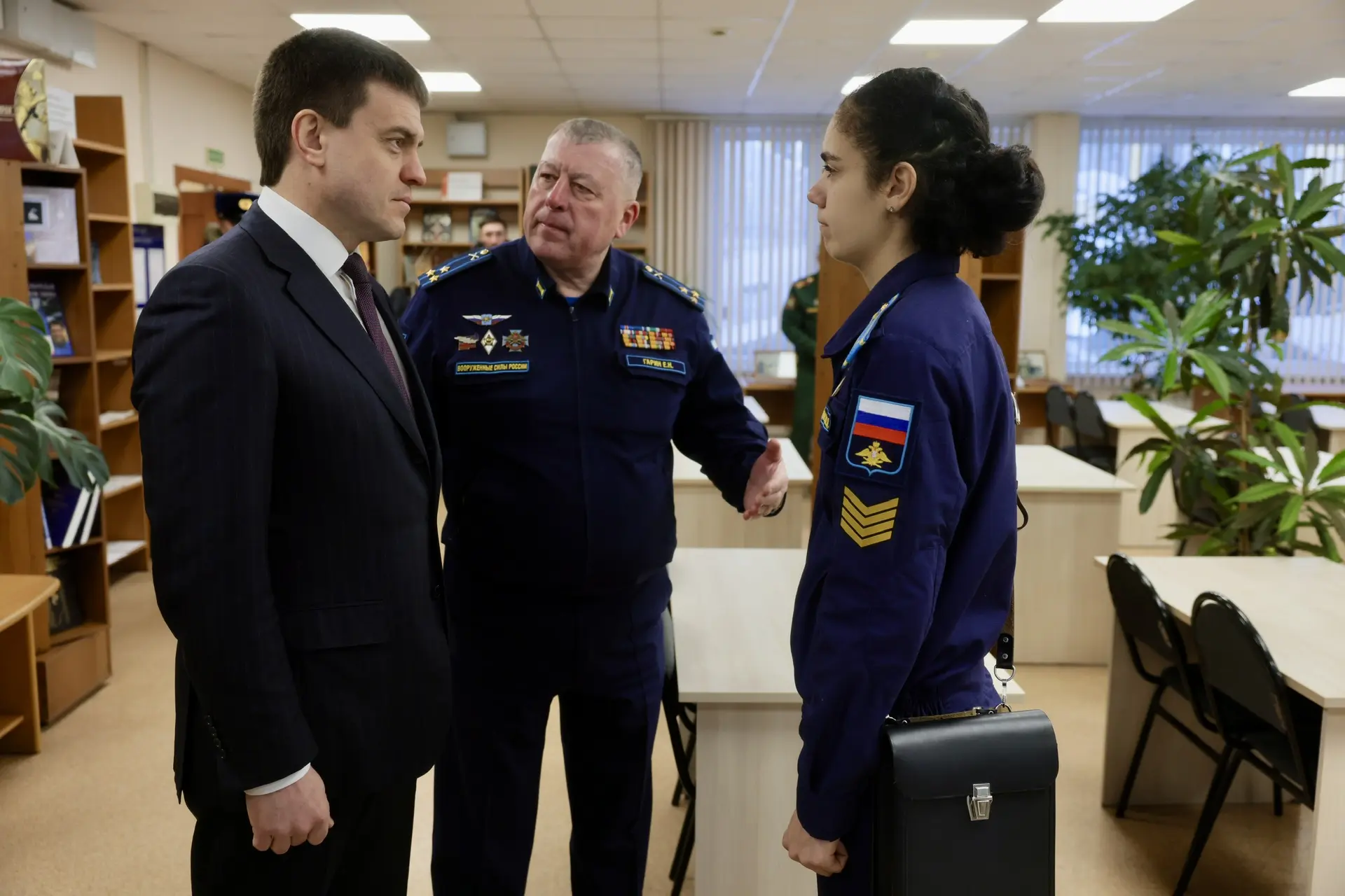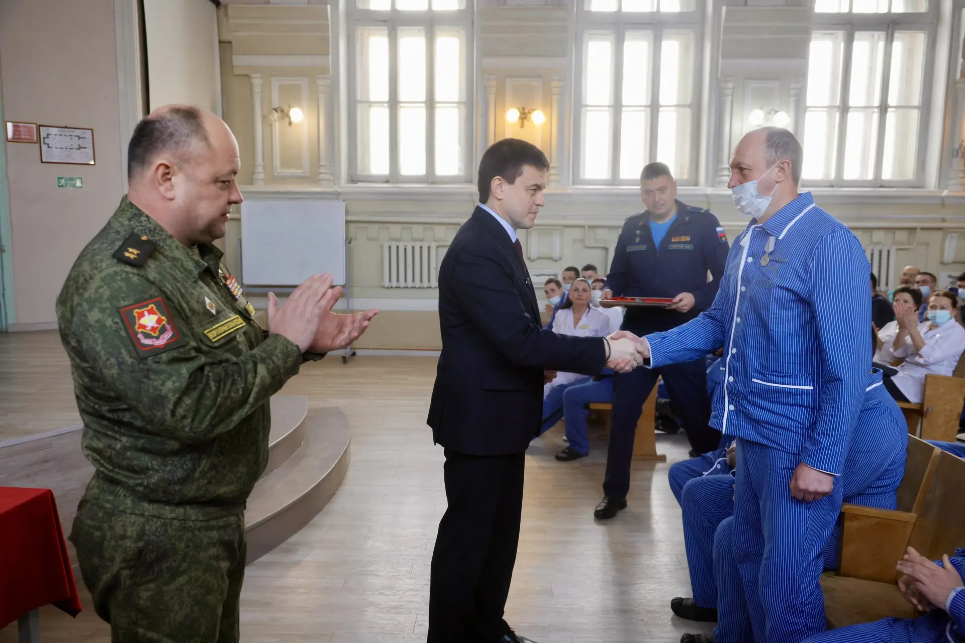 Вместе с временно исполняющим обязанности командующего войсками Центрального военного округа генерал-лейтенантом Дмитрием Овчаровым навестили бойцов, которые проходят восстановление в красноярском военном госпитале Министерства обороны РФ.