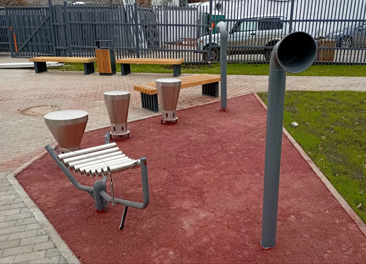 Изюминка проекта — необычная площадка во дворе. Там установлены музыкальные инструменты, на которых смогут играть все желающие.