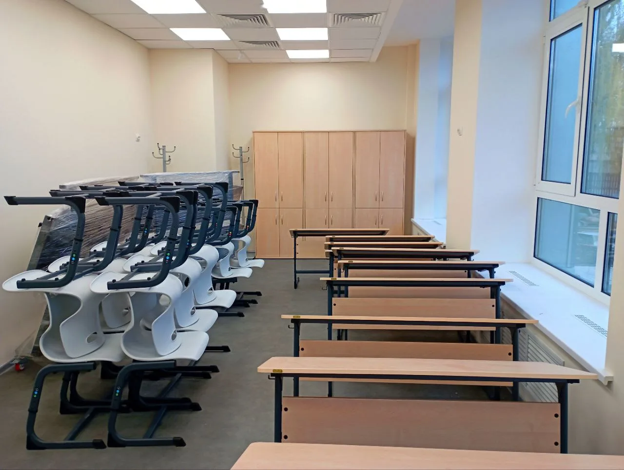 Строительство завершено на 90%. Отопление, свет и вода подключены, а в кабинетах уже расставили мебель.
