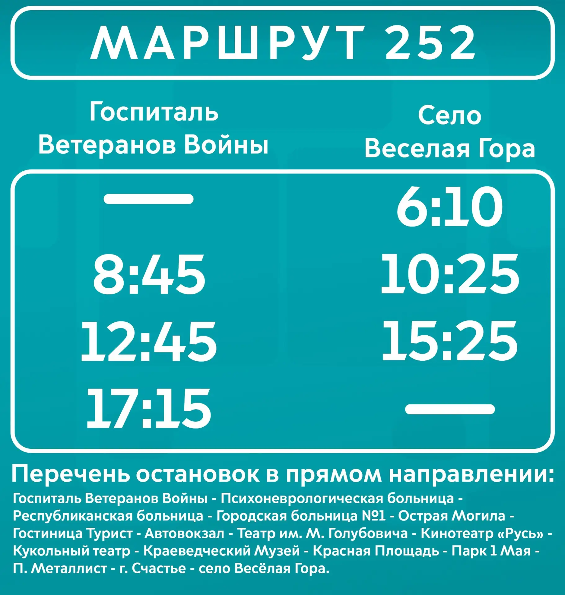 Автобусы будут курсировать ежедневно по маршруту «Госпиталь Ветеранов Войны — п. Металлист».