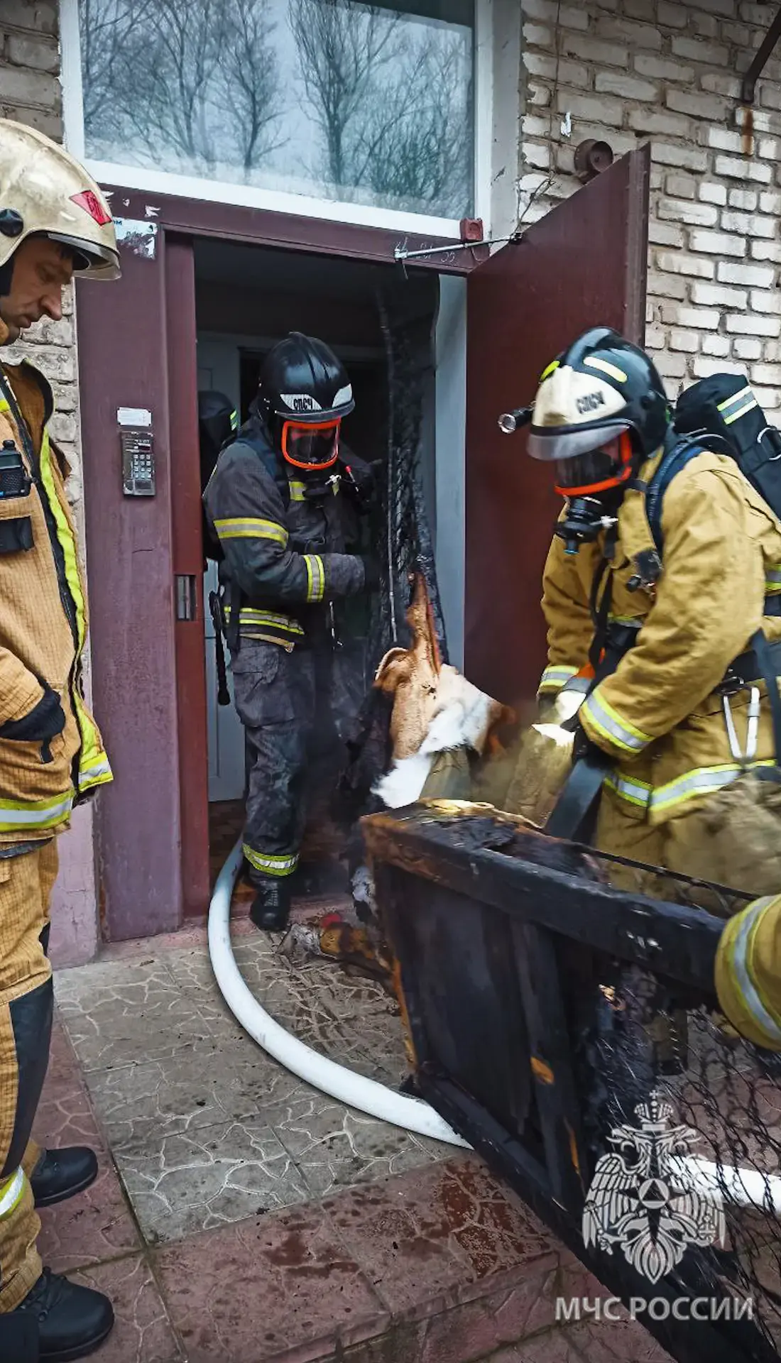 Прибывшие спасатели в густом дыму нашли хозяина и передали врачам.