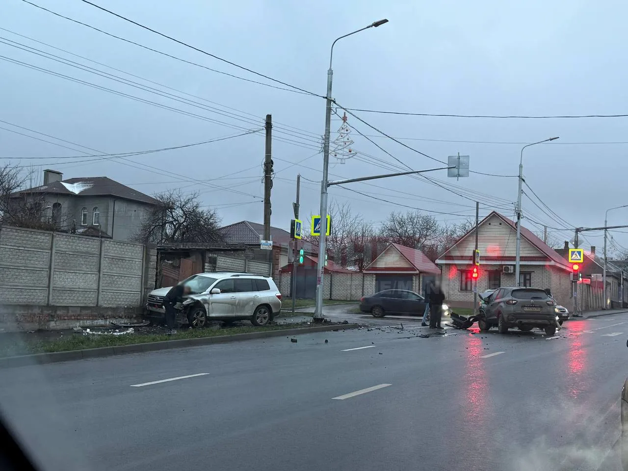 От удара одна из машин улетела в забор. О пострадавших информации нет.
