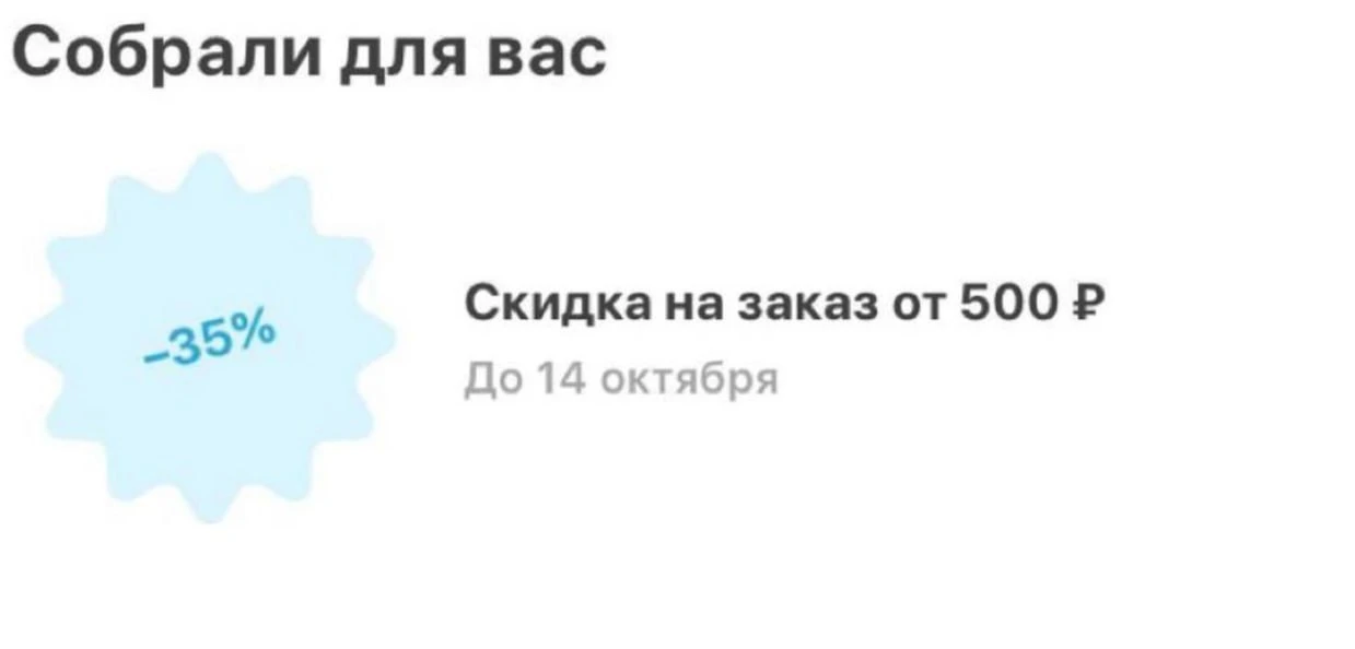 На некоторые аккаунты дали промокод на скидку 35% от 500₽. Проверяйте!