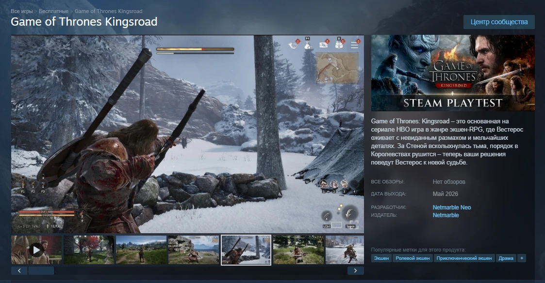 🔥 Game of Thrones: Kingsroad выходит в России на русском языке. Страничка в Steam уже открыта. Релиз в мае 2026 года, ЗБТ пройдет с 17 по 24 апреля. На данный момент доступ из СНГ стран заблокирован (открыто только для РФ).