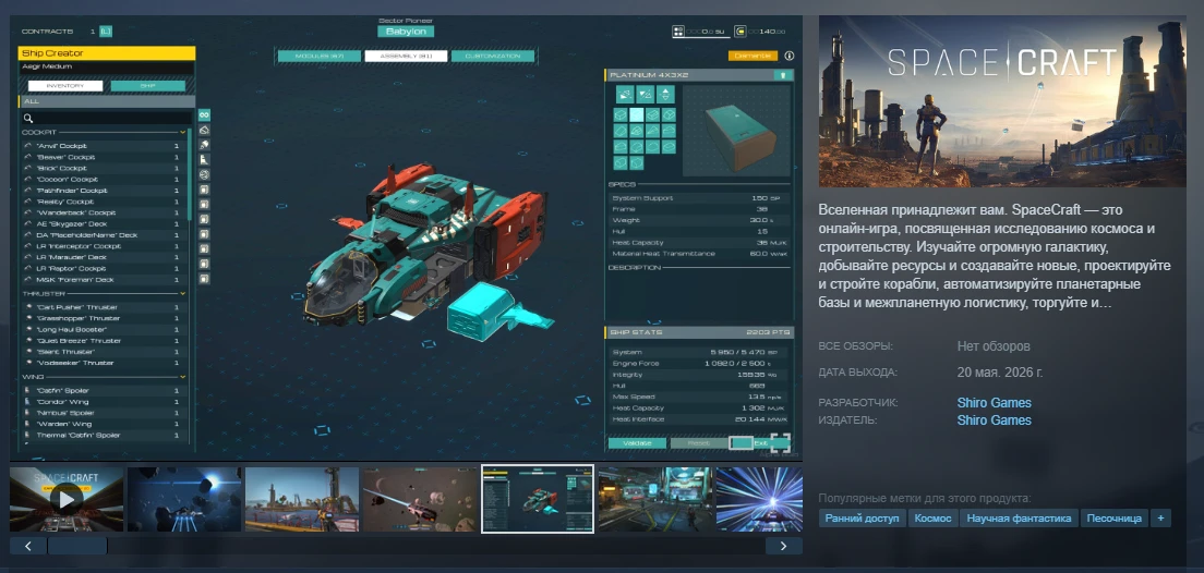 🔥 Студия Shiro Games анонсировала выход MMO-песочницы SpaceCraft в раннем доступе Steam на русском языке. Старт 20 мая 2026.