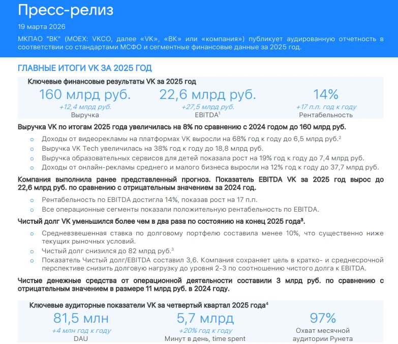 • VK восстановил финансовую устойчивость, но рост замедляется
