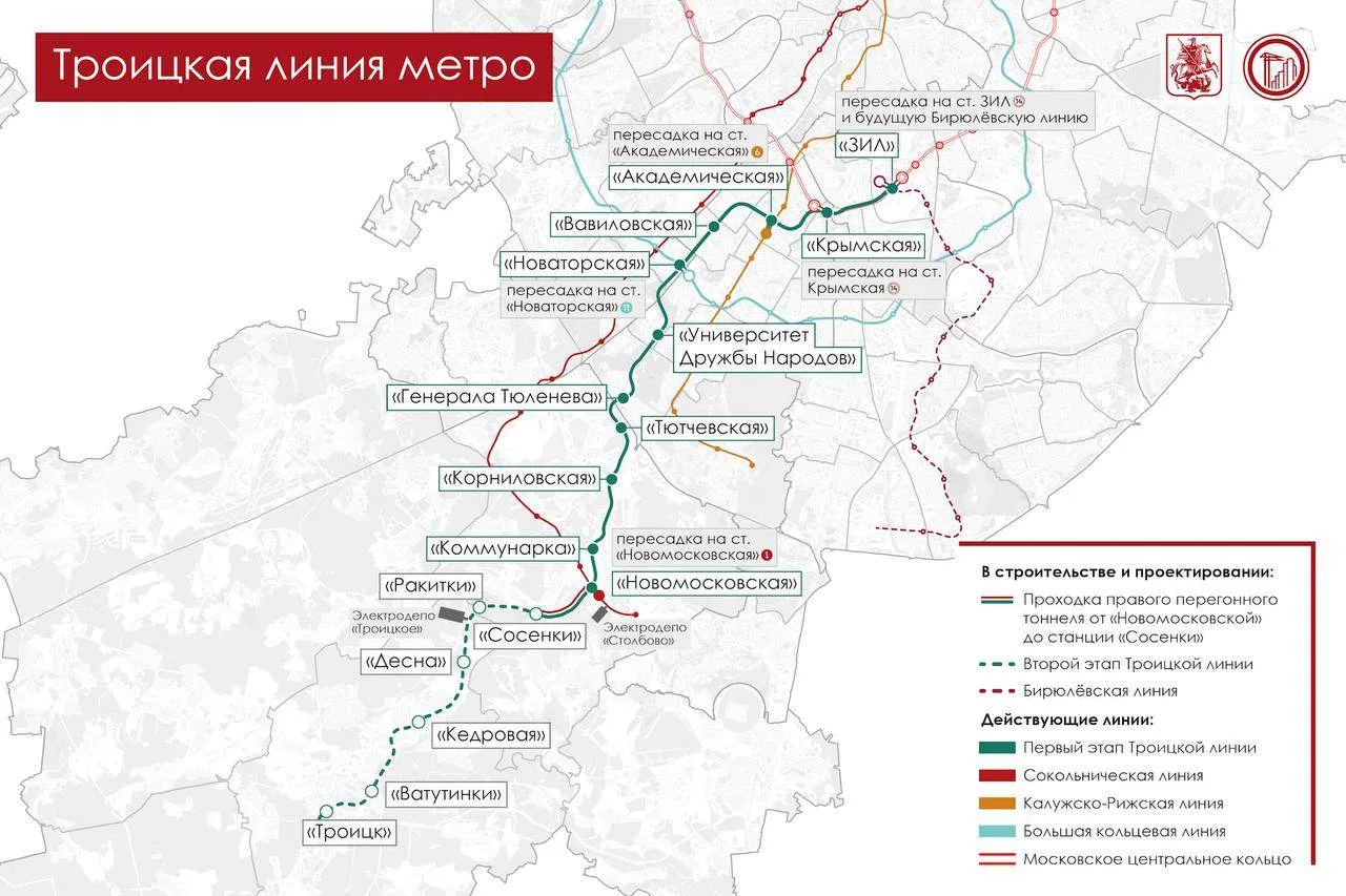 Южный участок ветки пройдёт от Коммунарки до Троицка. Благодаря ему доступ к метро получат свыше 300 000 жителей Новой Москвы.