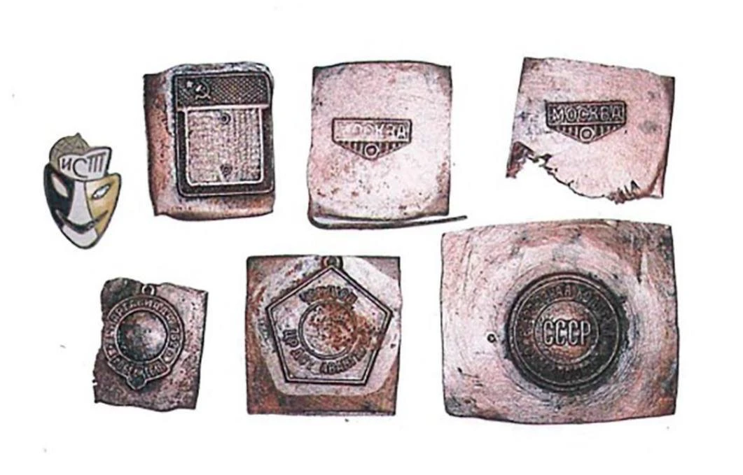 Археологи также обнаружили латунные значки с эмалью советского периода. Среди них: «Всесоюзная коллегия судей по спорту», «Спартакиада-1962. Победитель», «Чемпион ДСК “Авангард”», два треугольных с надписью «Москва» и другие.